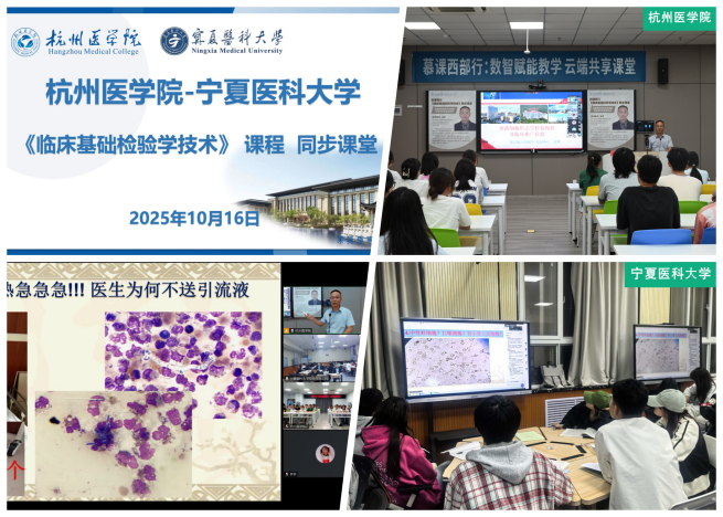 为深入实施教育部“慕课西部行计划”,推动东西部医学检验教育协同发展,10月16日,杭州医学院检验医学院、生物工程学院携手宁夏医科大学检验学院,依托云端技术跨越近两千公里,共同呈现了一堂生动精彩的《临床基础检验学技术》同步课堂。本次课程特邀本院临检教研室教师、国内资深细胞学专家吴茅教授主讲,为两校医学检验技术专业的学生深入讲解了体液细胞形态学检验的现状及临床应用。