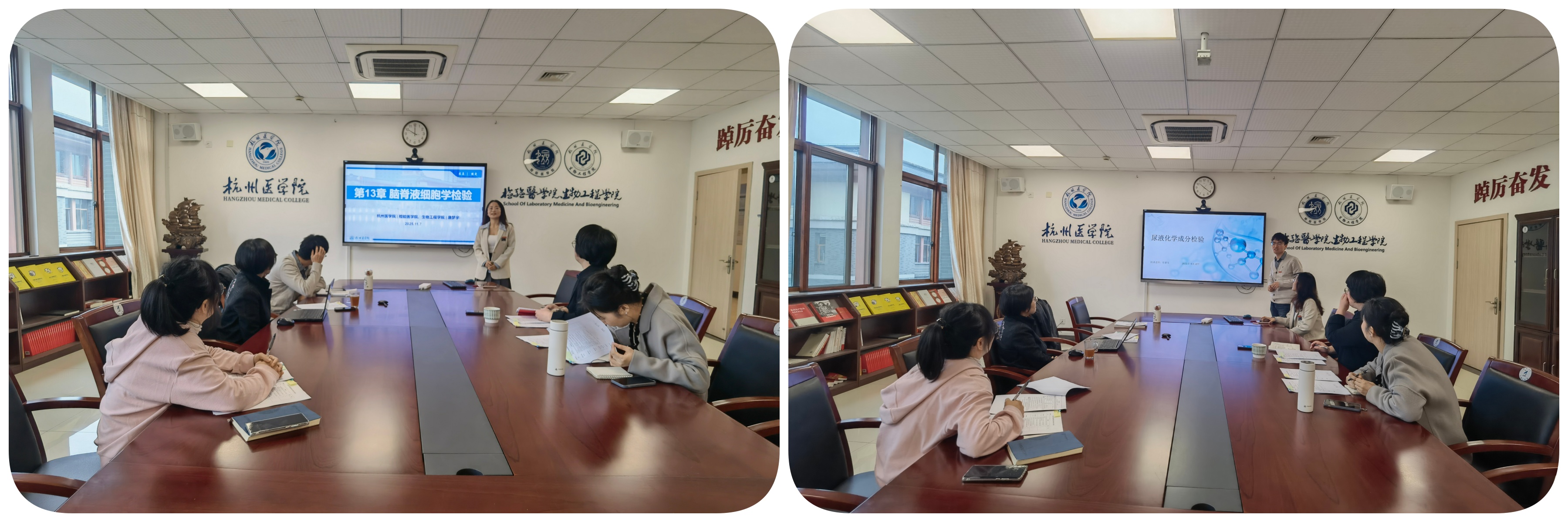 11 月 7 日唐梦宇、任孝军两位老师在 11 号楼 408 会议室进行本学期授课课程试讲,学院 4 位督导老师全程参与考核。唐梦宇老师本学期承担卫检专业《临床基础检验》课程的理论和实验教学,她以《脑积液细胞学检验》为授课内容,教态自然大方,语速张弛有度,讲解条理清晰,课程引入环节设计巧妙,课件制作精美,展现出良好的教学素养;任孝军老师本学期承担了医检专业《临床基础检验》课程的部分理论教学和《临床基础检验学技术》课程的部分实验教学,他聚焦《尿液化学成分检验》相关内容,结合科研前沿讲解逻辑严谨,授课知识面广,教学基本功扎实。督导老师们给予充分肯定,同时建议进一步增加课堂互动环节设计,增强师生交流,提升教学实效。