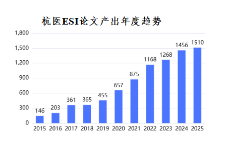 高水平成果展示:编制 4 期SCI论文季报、6 期ESI高水平论文报告,系统梳理各学院、部门科研贡献与合作网络,为科研绩效评估、人才评价政策的制定提供数据支撑。策划举办“2025 年杭医学术成果展”,集中呈现 9 个二级单位 40 篇高质量 SCI 论文,营造浓厚学术氛围,助力科研创新。