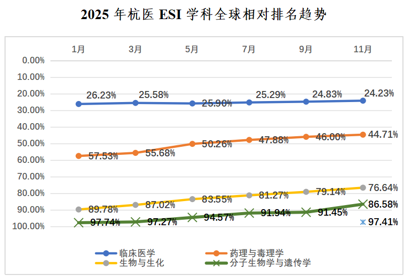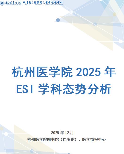 学科态势监测:持续跟踪学校ESI学科发展态势,编制《2025年杭州医学院ESI学科态势分析报告》,第一时间分析报告了我校“免疫学”首次进入ESI全球前1%这一学科建设重要进展。重点聚焦 “社会科学总论”“材料科学” 等潜力学科,开展科研态势跟踪与贡献度分析,为学校识别和培育下一个 ESI 前 1% 学科提供前瞻性数据支持。