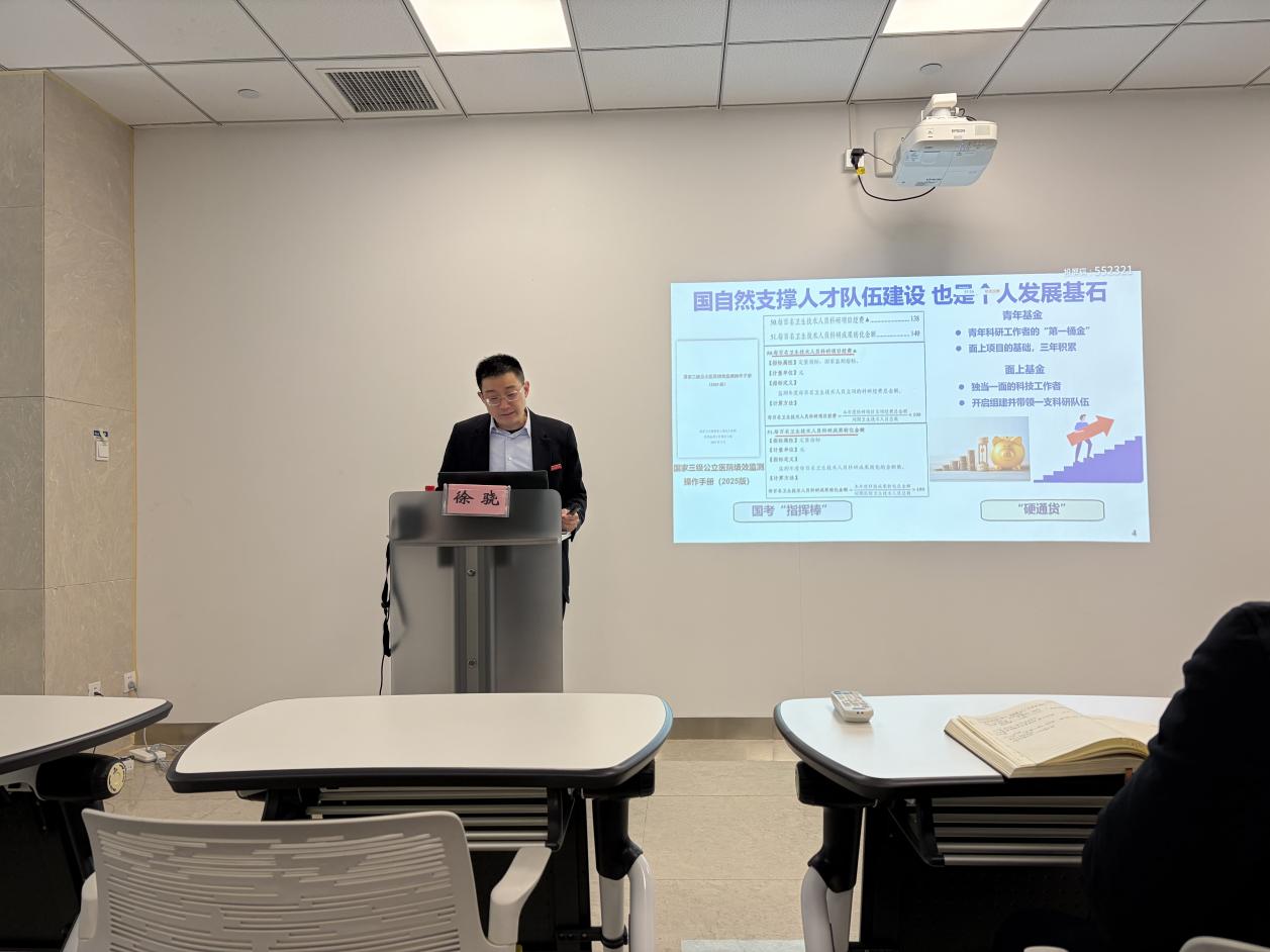 讲座中,徐骁教授首先系统梳理了国自然申报的整体形势与最新政策导向,围绕申报热点领域、学科发展趋势等内容进行深度解读,帮助教师精准把握申报方向。随后,他聚焦申报书核心模块,从选题立意、立项依据、研究内容与方案设计,到创新点提炼、关键科学问题凝练等方面,结合自身丰富的申报与评审经验,逐一拆解撰写要点,剖析常见误区,并分享了实用的优化技巧。
