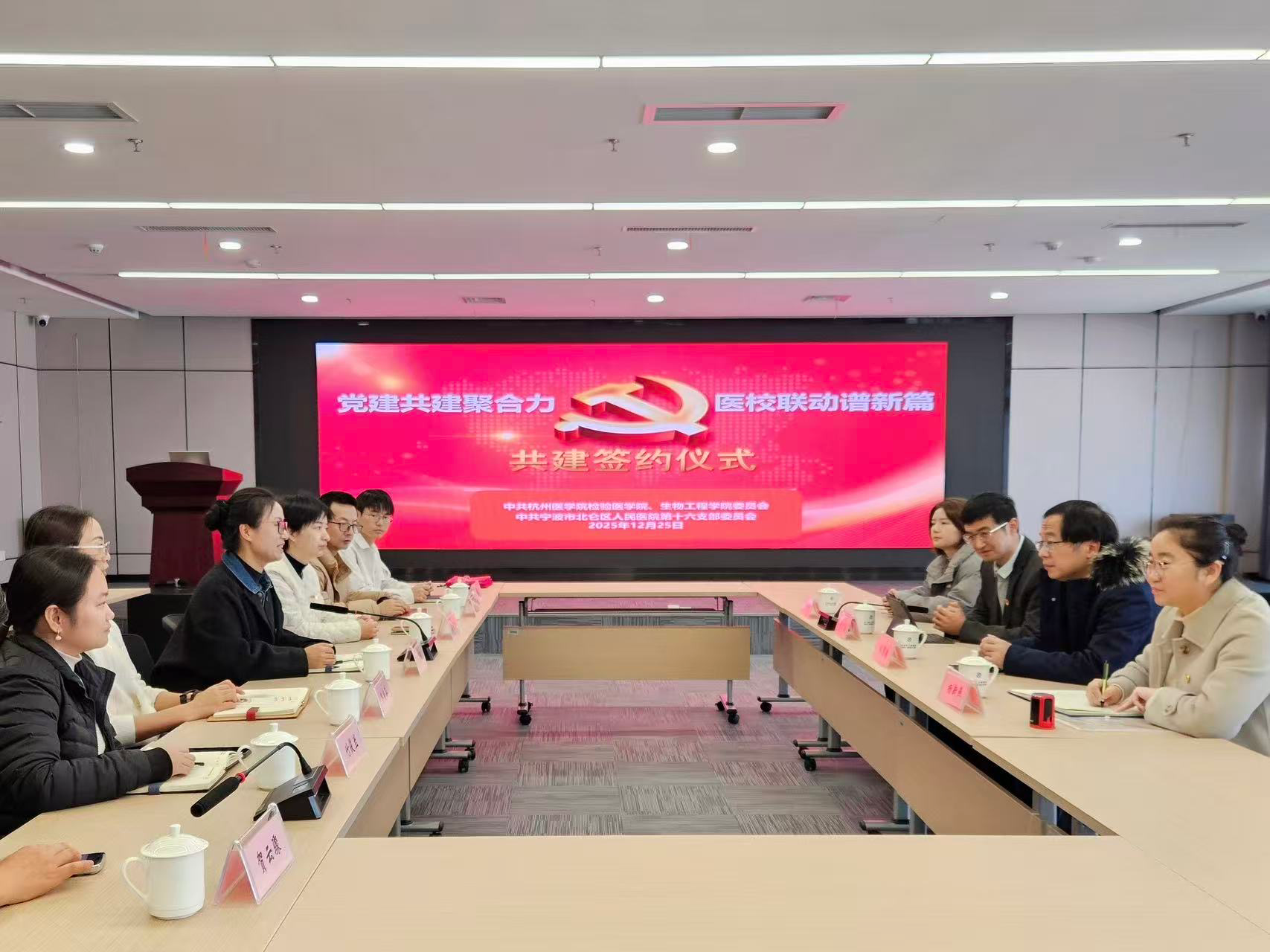 为深化医教研协同发展,促进学生就业,实现资源共享与优势互补,12月25日,检验医学院、生物工程学院党委与宁波北仑区人民医院第十六党支部签署党建联建协议,标志着“杭医检生联盟”实现浙江11地市全覆盖。双方相关党员代表参加会议。