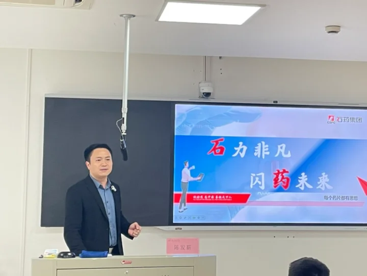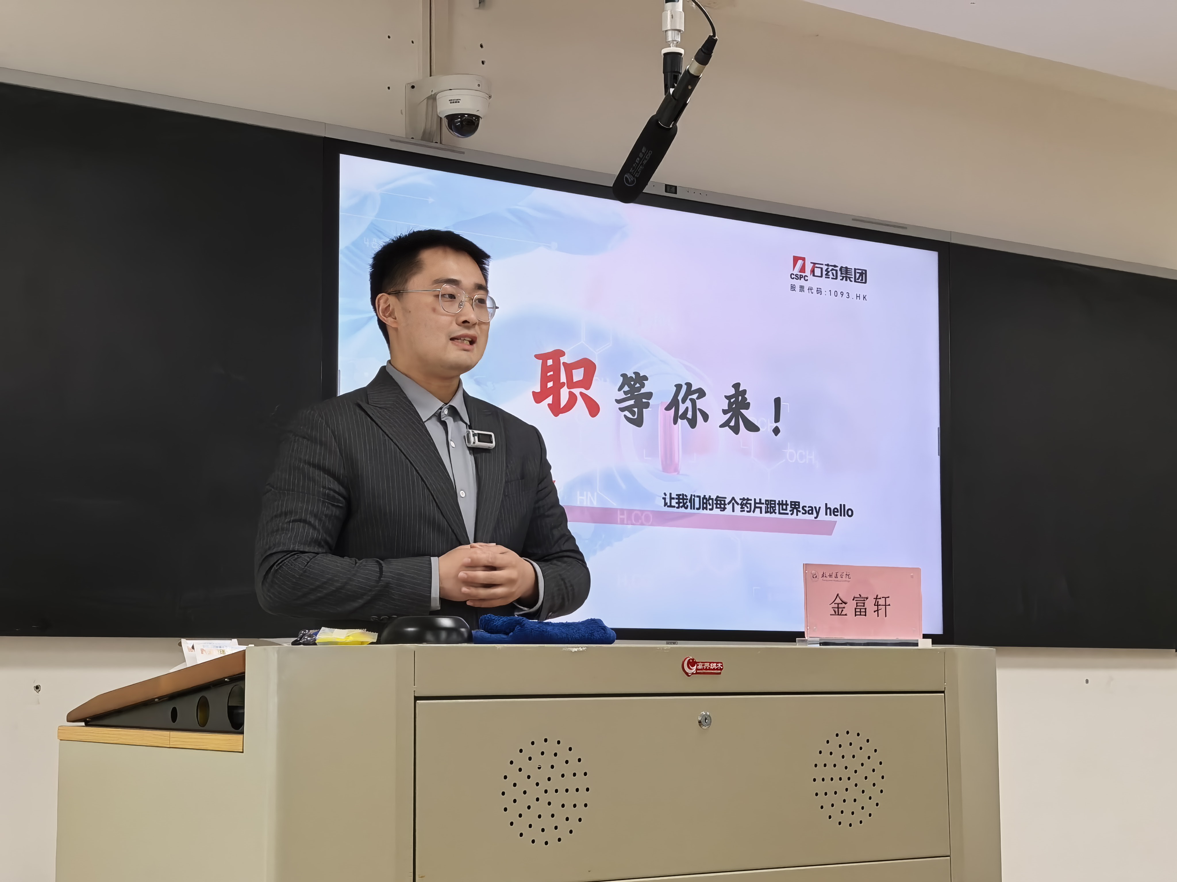 接着,绍兴地区营销专员金富轩,也是我校23届药学专业毕业生和大家分享了自己对医药营销岗位的认识,以及入职石药之后的体会。他鼓励学弟学妹要放下心中的成见,勇于尝试新事物,不断挑战自我,也欢迎学弟学妹加入石药为中国善报天下人。