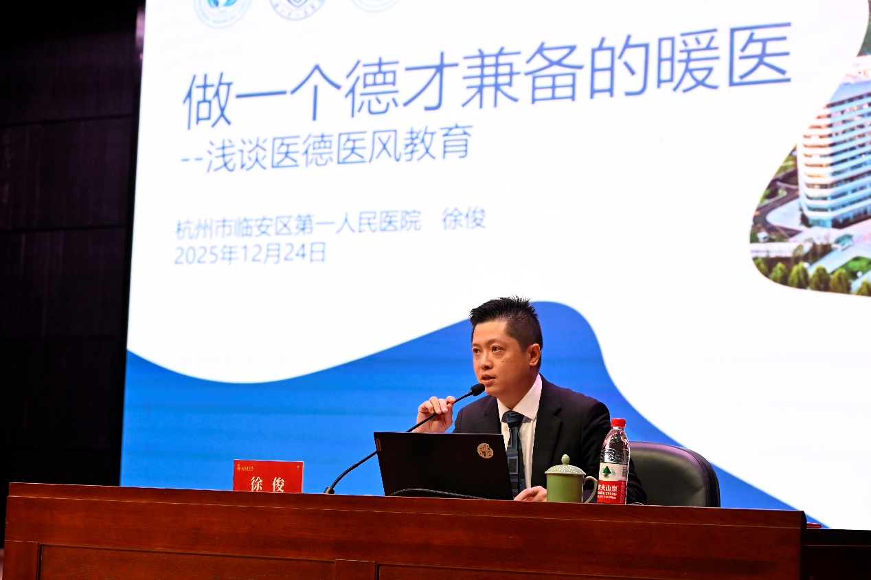12月24日晚,杭州医学院马克思主义学院“真理的味道·明理讲堂”在临安校区学生活动中心大礼堂举行,临安区第一人民医院党委委员、纪检书记、普外科主任医师徐俊应邀作题为《如何做一个德才兼备的暖医》的专题讲座。我校本科一年级学生500余人参加了本次活动。