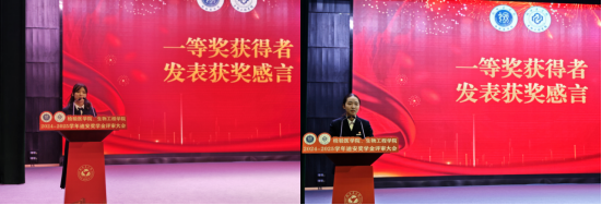 随后一等奖获奖学子依次登台分享感悟。翟华倩以 “走遍风雨见晴空” 道尽逐梦征程,那些日夜耕耘的汗水与坚守初心的泪水,终在这一刻收获认可与荣光。她深情致谢一路给予支持的师长、同窗与亲友,更承诺将以脚踏实地的姿态,用行动诠释青年担当,以不懈坚持书写成长华章。宋烨莎则以一句 “前路漫漫亦灿灿” 传递出对未来的憧憬与笃定,她表示,这份荣誉是激励更是鞭策,未来的道路或许仍有挑战,她将始终牢记医者使命与青年担当,把这份荣誉转化为不竭的奋进动力,坚持初心、牢记使命、勇于探索,带着这份赤诚与热爱,奔赴属于自己的山海远方。
