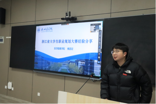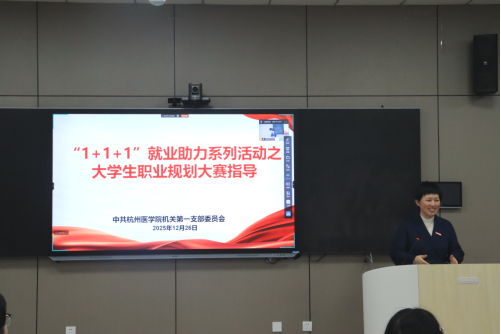 为提升学生竞赛水平,明晰职业规划方向与个人定位,进一步推动高质量就业,12月26日中午,杭州医学院机关第一党支部(校办公室)在临安校区活动中心125教室举办“1+1+1”就业助力系列活动——大学生职业规划大赛指导讲座。第十五届省大学生职业规划大赛优秀指导老师获得者赖思宏担任主讲。
