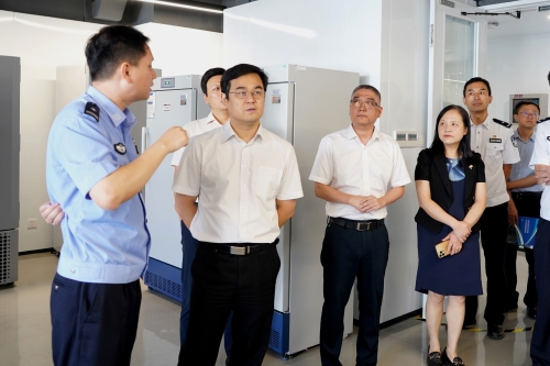 随后,梁广校长一行还参观了分中心各实验区,深入了解分中心在全域物联污水毒品监测、新型毒品药理毒理解析与快速筛查预警等领域的技术成果。