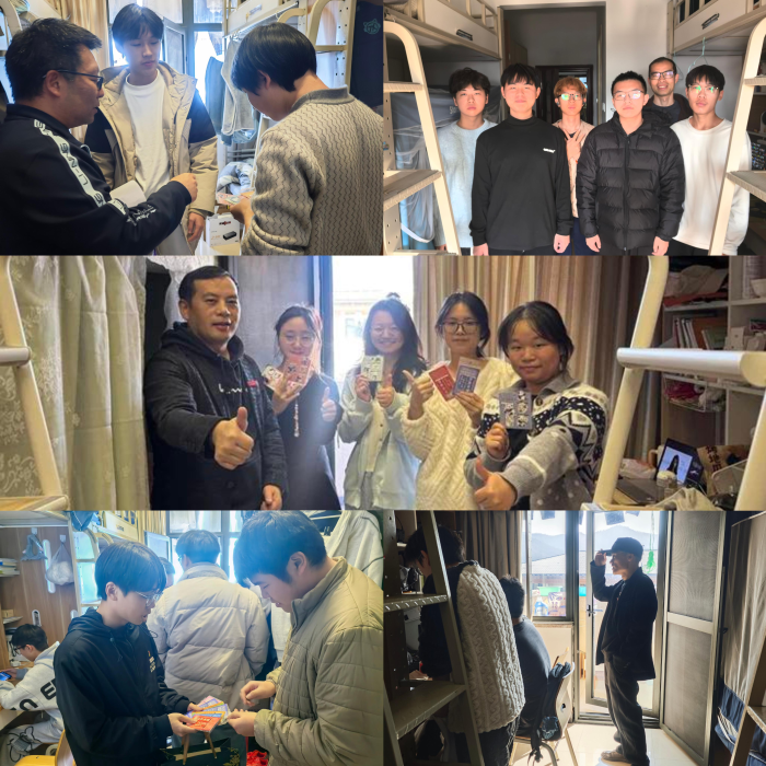 为了深入关心服务25级新生,推动党员教师联系学生寝室走深走实,学生党支部联合教工党支部于1月15日共同组织党员师生开展“暖新生·显担当”走访慰问服务。师生党员结对深入新生寝室进行面对面交流,询问学习进展、生活适应情况及实际困难,倾听新生心声。特别关注了宿舍的安全和卫生状况,并再三叮嘱同学们期末考试做到诚信应考。最后,学生党支部为同学们分发了磁性书签等学习用品,以励志寄语传递组织温暖。