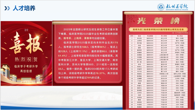 为让学子们全面了解杭医的专业布局,团队特别联动了在杭医不同专业就读的松阳一中学子,结合他们的就读体验与报考初衷展开分享。从临床医学、药学等一流学科的强劲实力,到医学影像专业的广阔就业前景;从学校完善的校级奖学金体系,到特色鲜明的企业奖学金,再到杭医作为省内唯二开设法医学专业的院校优势,多角度的专业解读,让在场学子对杭医各专业有了清晰且全面的认知。