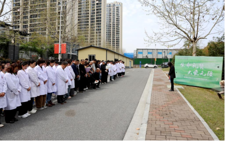 宣誓完毕后,全体人员向无语良师碑默哀一分钟,以无声的敬意缅怀那些为医学事业献出一切的奉献者。