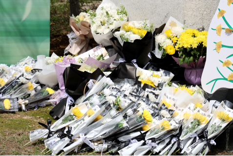 仪式最后,师生们依次向无语良师碑敬献鲜花,深深鞠躬。朵朵菊花寄托着哀思与敬意,象征着医者纯洁的初心。