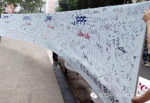 2014年9月26日,我校“青春秘语”协会积极响应浙江省计生协的号召,提前筹备,认真宣传,在我校青年人中举行了一场“余波不小”的签名活动。