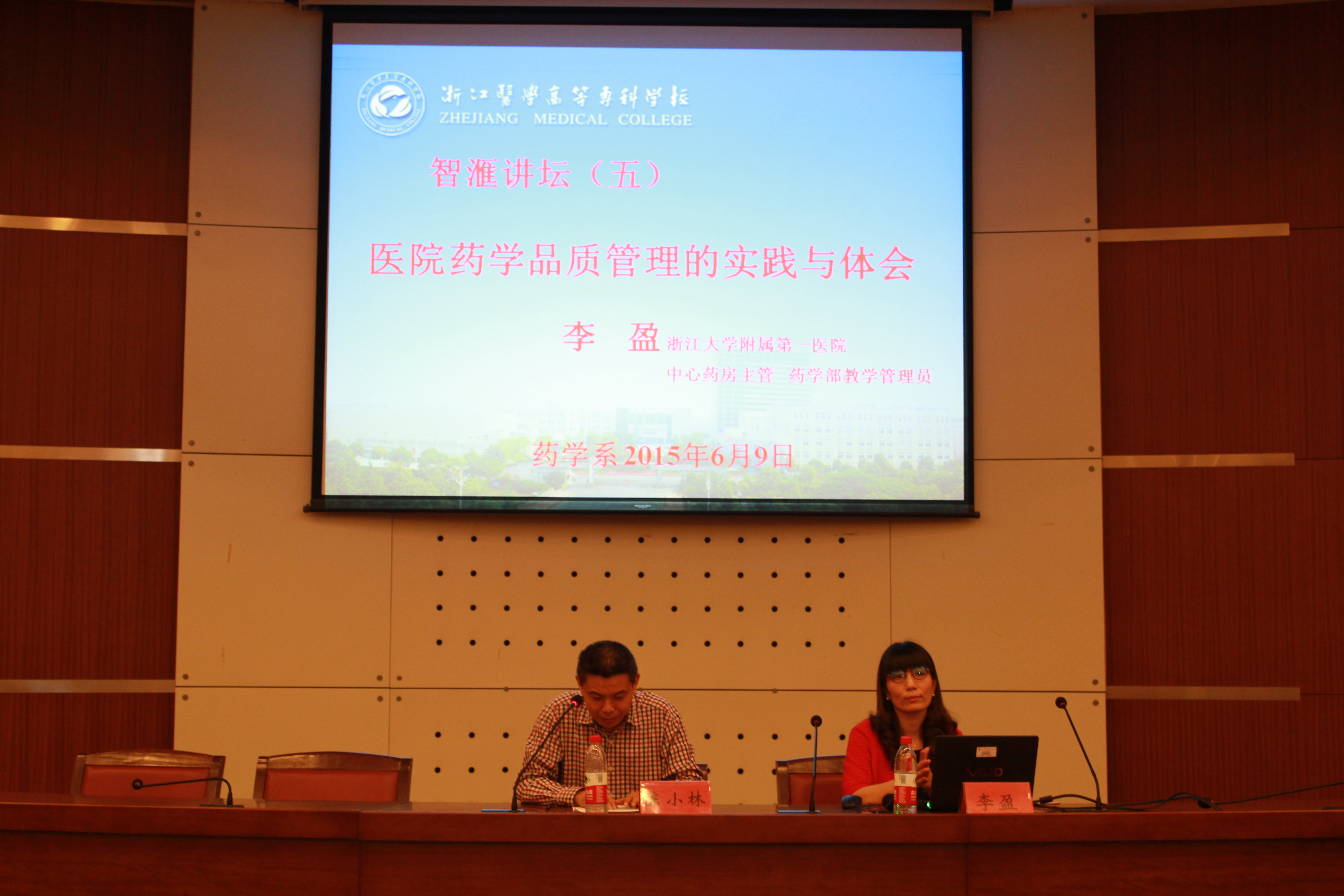 2015年6月9日下午15:00,药学系第五期《智匯讲坛》在图书馆学术报告厅如期举行。本期的主讲人为我系药剂8910班优秀校友、浙江大学附属第一医院中心药房主管、北京大学医学人文研究院公益讲堂特邀讲师李盈女士。李盈老师还担任浙一医院药学部教学管理员,具有香港理工大学品质管理硕士学位,在医院药学质量管理方面有着深厚的理论知识和丰富的实践经验。此次她给药学系师生带来了题为《医院药学品管圈实践与体会》的讲座,讲座由药学系党总支副书记陈小林老师主持。