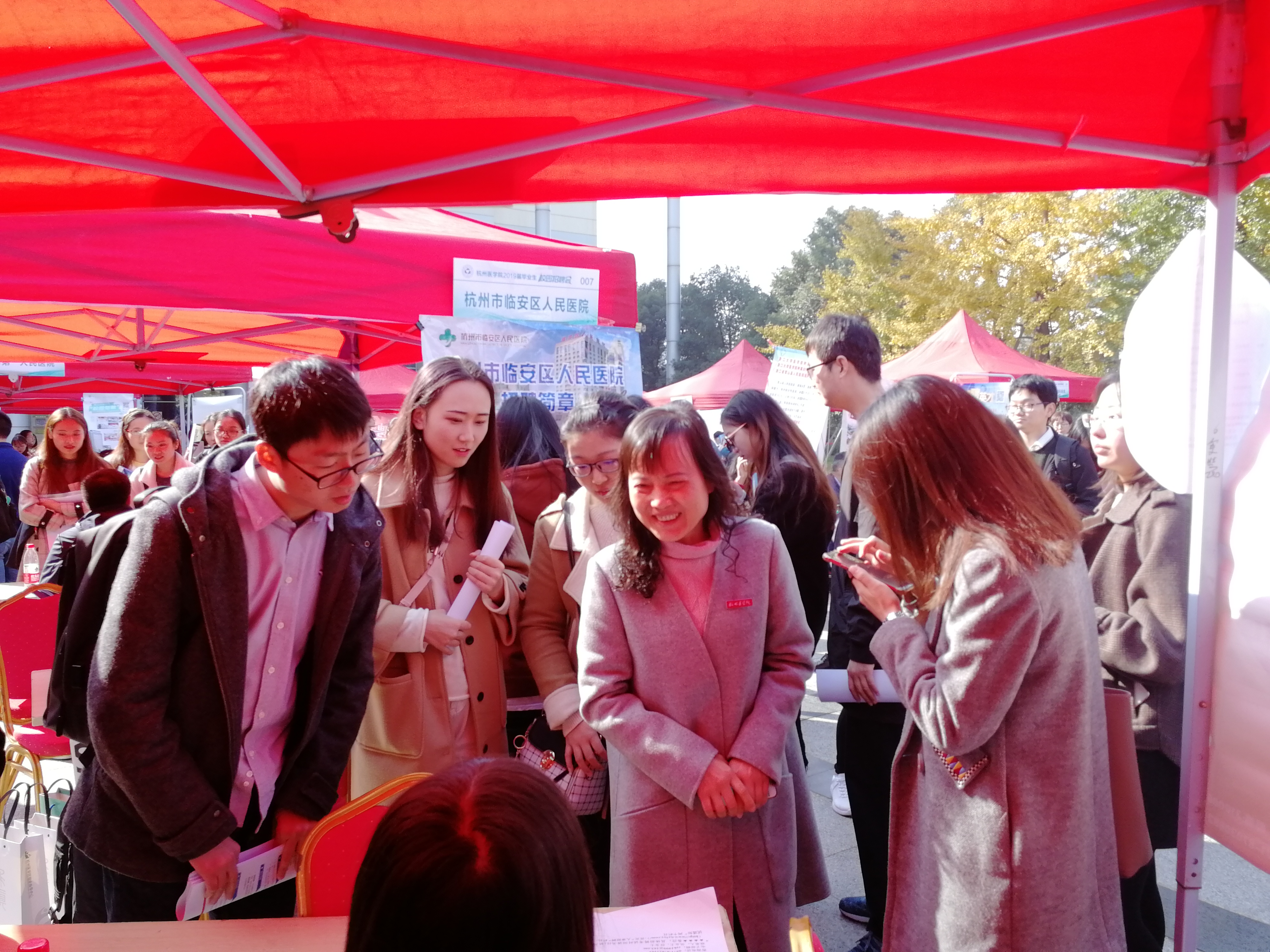 2018年11月23日,杭州医学院2019届毕业生招聘会在滨江校区举行,护理学院近300位应届毕业生参加了本次校园招聘会。