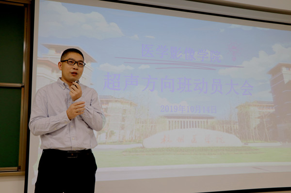 10月14日,医学影像学院2018级医学影像学专业超声方向班遴选动员会在临安校区顺利举行。学院院长徐秀芳、附属人民医院超声医学科副主任彭成忠,辅导员及120名2018级医学影像学专业学生参加。