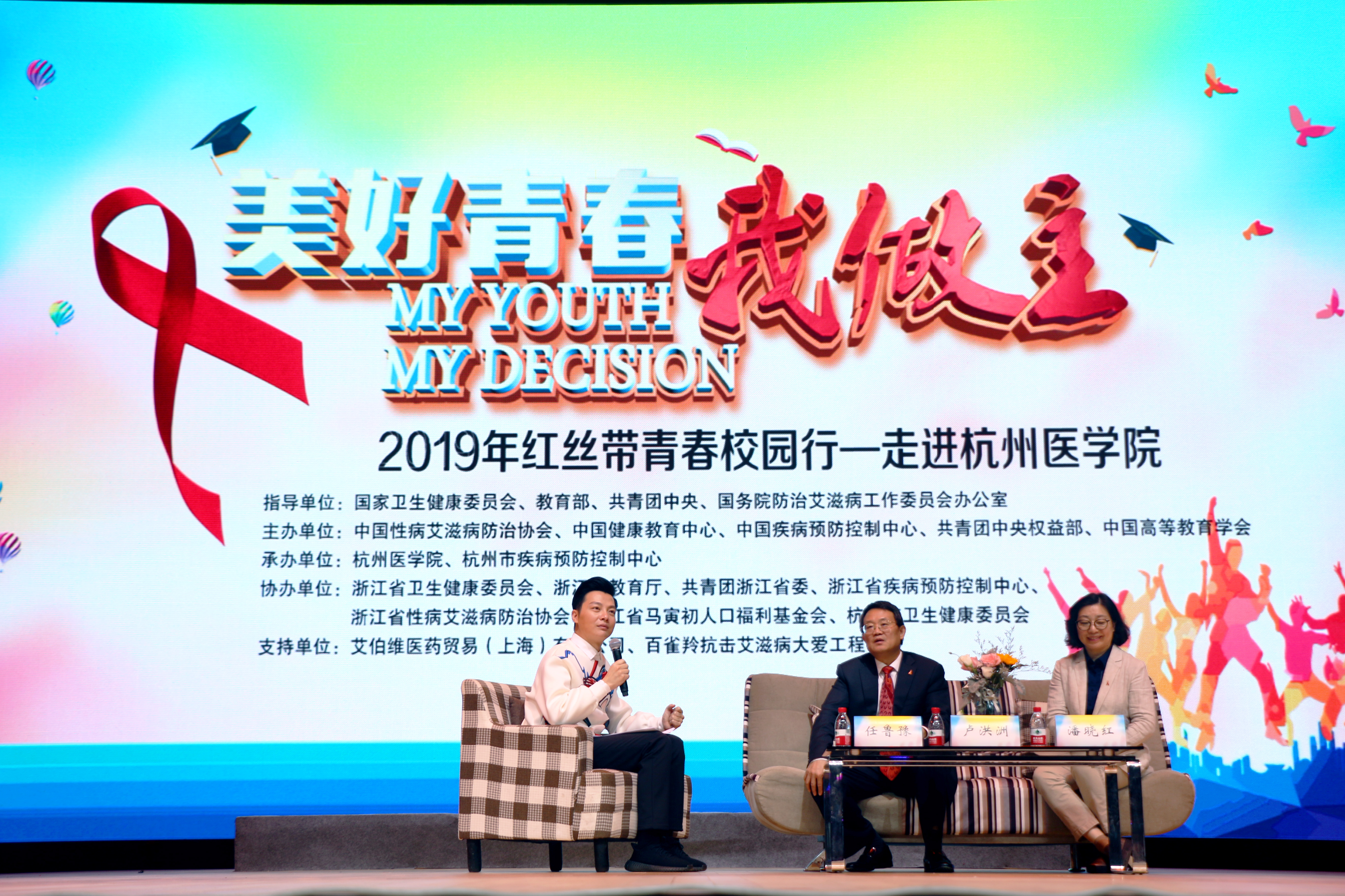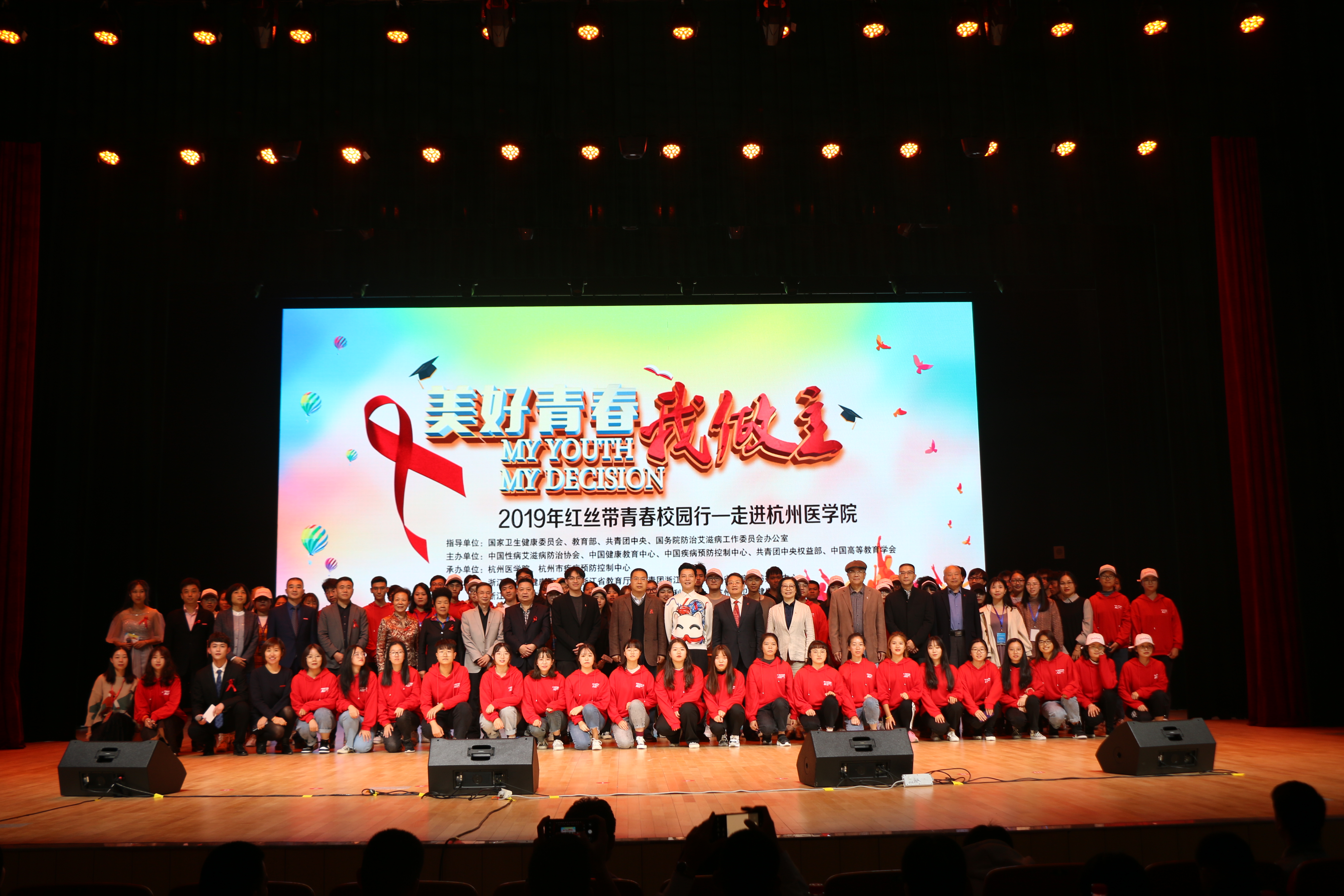 11月17日晚,由中国性病艾滋病防治协会、中国健康教育中心、中国疾病预防控制中心、共青团中央权益部、中国高等教育学会主办,我校与杭州市疾病预防控制中心联合承办的 “美好青春我做主” 2019年红丝带青春校园行活动在我校临安校区举行。中央电视台著名主持人、预防艾滋病宣传大使任鲁豫,上海市公共卫生临床中心党委书记卢洪洲,浙江省疾病预防控制中心艾滋病性病防制所所长潘晓红,浙江省学联、省卫健委疾控处、省教育厅体卫艺处、中国性病艾滋病防治协会、省马寅初人口福利基金会、省性病艾滋病防治协会、杭州市及临安区疾病预防控制中心等有关负责同志,我校学工部部长沈曦、宣传部副部长黄亦冰、青年师生代表等共计700余人参加了此次活动。