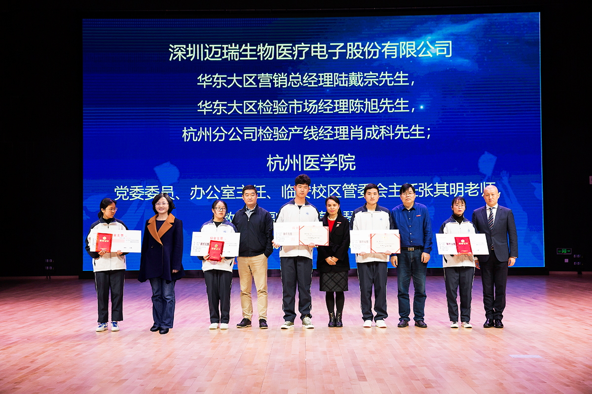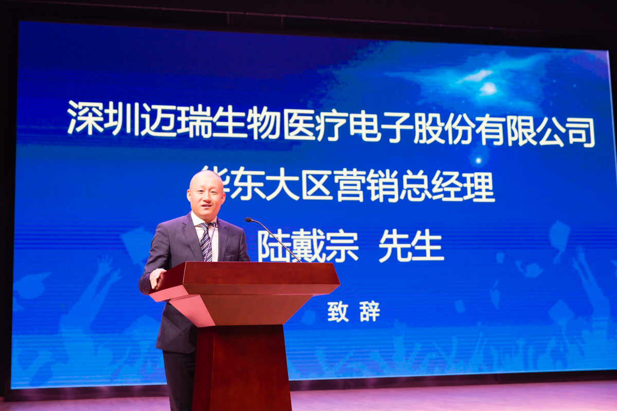杭州医学院张其明主任代表学校进行讲话,他回顾了由他主持的迈瑞公司与我校签署迈瑞奖学金以及杭州医学院---迈瑞共建实验室协议时的场景,表达了对迈瑞公司的感谢、对获奖者的祝贺以及对其他同学的勉励。