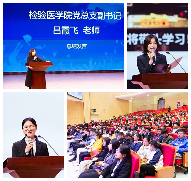 大会最后,学院党总支副书记吕霞飞老师做学风建设的总结。吕老师首先强调了学风建设的重要性,对学院的学风情况进行了分析,并结合本学期实施的学校学业评价改革细则,分析上学期期末考试情况,提醒同学们务必重视平时的学习,确保期末考试顺利通过。吕老师要求大家做到以下几点:树立正确的学习观,努力做一个有理想、有作为的人;养成良好的学习习惯,严格遵守学校规章制度;做一个诚信的人,在学习和考试中自我监督,诚信应考;学会学习,学会思考;学风建设,从我做起。吕老师还把学风建设与安全教育相结合,安全是学风建设的基础和保证,给同学们进行了专题安全教育。以防范网络诈骗为切入点,结合实际发生的案例给广大同学介绍了冒充亲友类、求职兼职类、网络购物类、栏目中奖类等几种常见的诈骗类型,提醒同学们切勿上当受骗。吕老师还提到了寝室安全、实验室生物安全等注意事项。最后,吕老师希望获奖的同学再接再厉,在杭医取得更优秀的成绩,不辜负学院和企业的期待。同时也希望在他们的引领和全体同学的共同努力下,给学校和学院营造一个优良的学风环境,共同书写更辉煌的人生篇章。