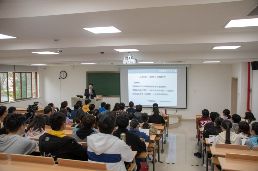 俞会长开篇点题:口腔医学是一个精彩的专业,是一门集艺术和科学为一体的学科,尤其注重实践。 他用多个浅显易懂的案例指出口腔健康与生命质量密切相关,加深了同学们对口腔健康重要性的理解。口腔健康不仅是身心健康的标志,还能给人带来社会上的支持。 俞会长讲道,人工智能的飞速发展和广泛应用,使“智慧口腔医学”应运而生,提高了口腔疾病诊断和治疗的效率,推动口腔医学的进步,给重症患者带来希望。口腔医学生不应只是在临床上持续发展,还应在科研方面不断创新。我们将保持初心,为医治更多病人,更好地治疗病人而不懈努力。