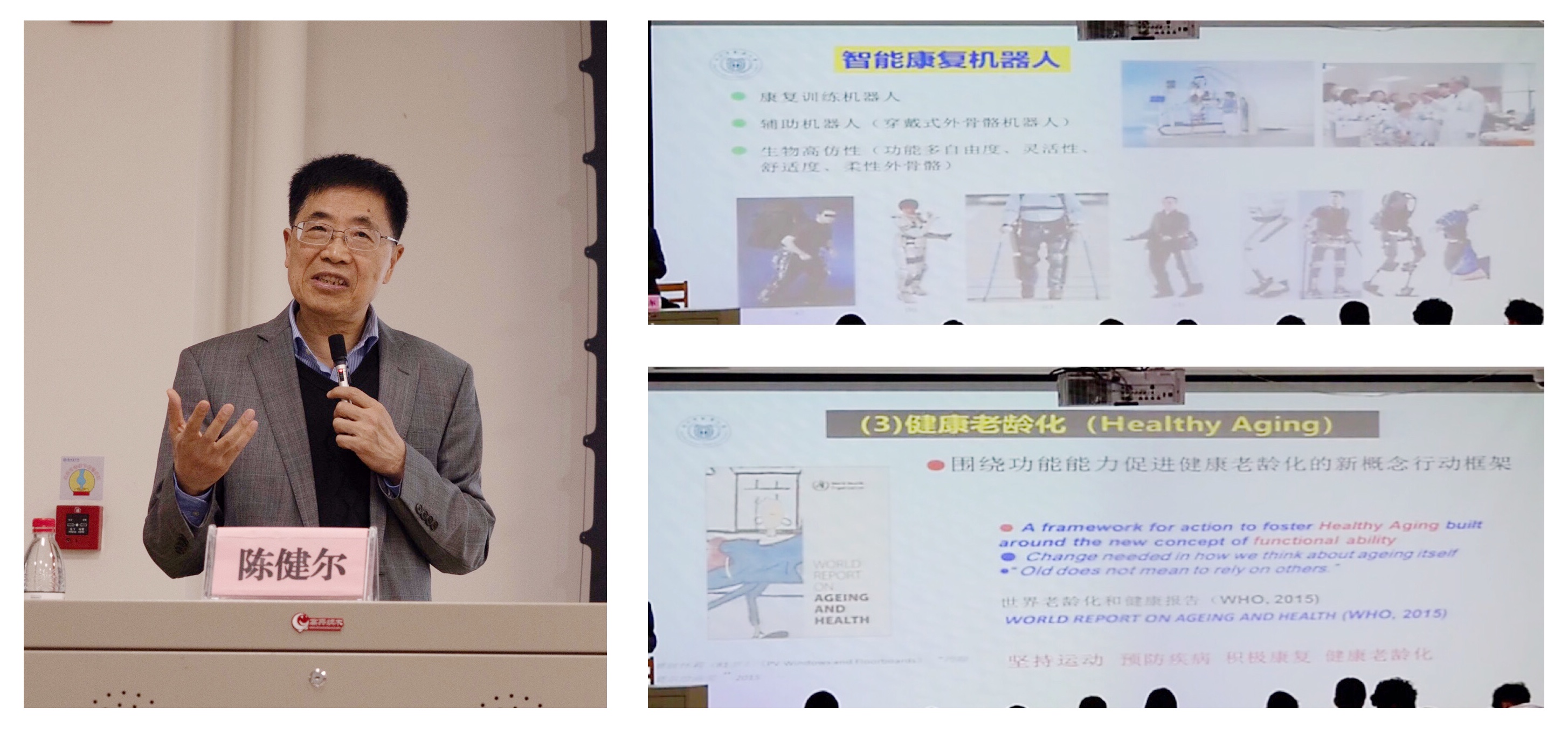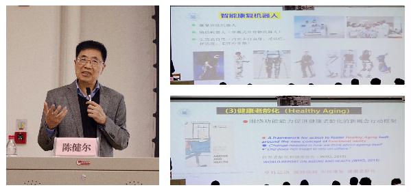 本次讲座主要面向我院20级康复治疗专业新生,为了能让同学们更直观的认识康复了解康复,培养同学们的专业自信心,陈教授还从ICF(国际功能、残疾和健康分类)的发展入手,向同学们介绍康复新理论新技术,如健康老龄化的概念,智能康复机器人、智能假肢的应用等。