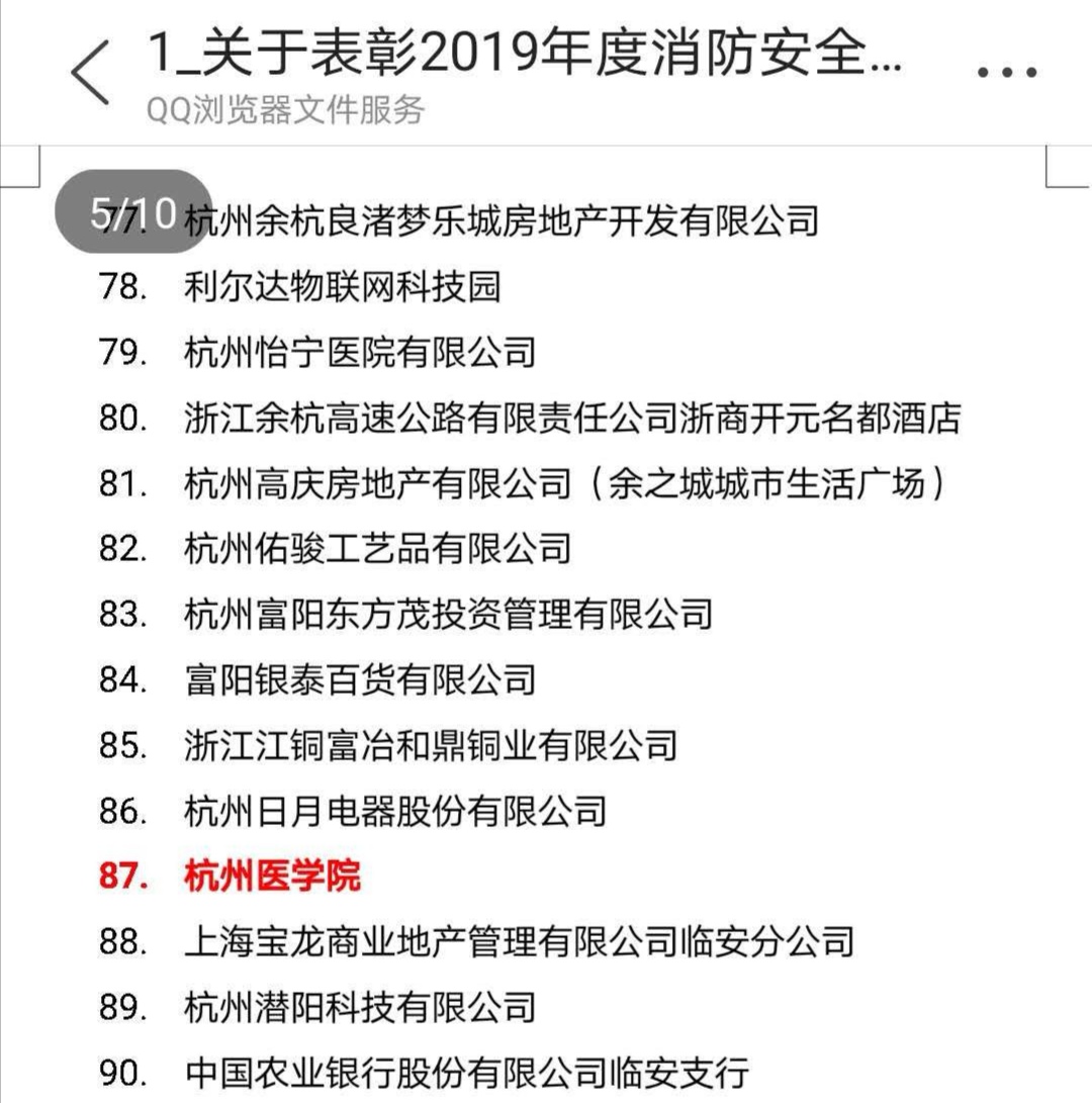 我校荣获“杭州市消防工作先进单位”荣誉称号