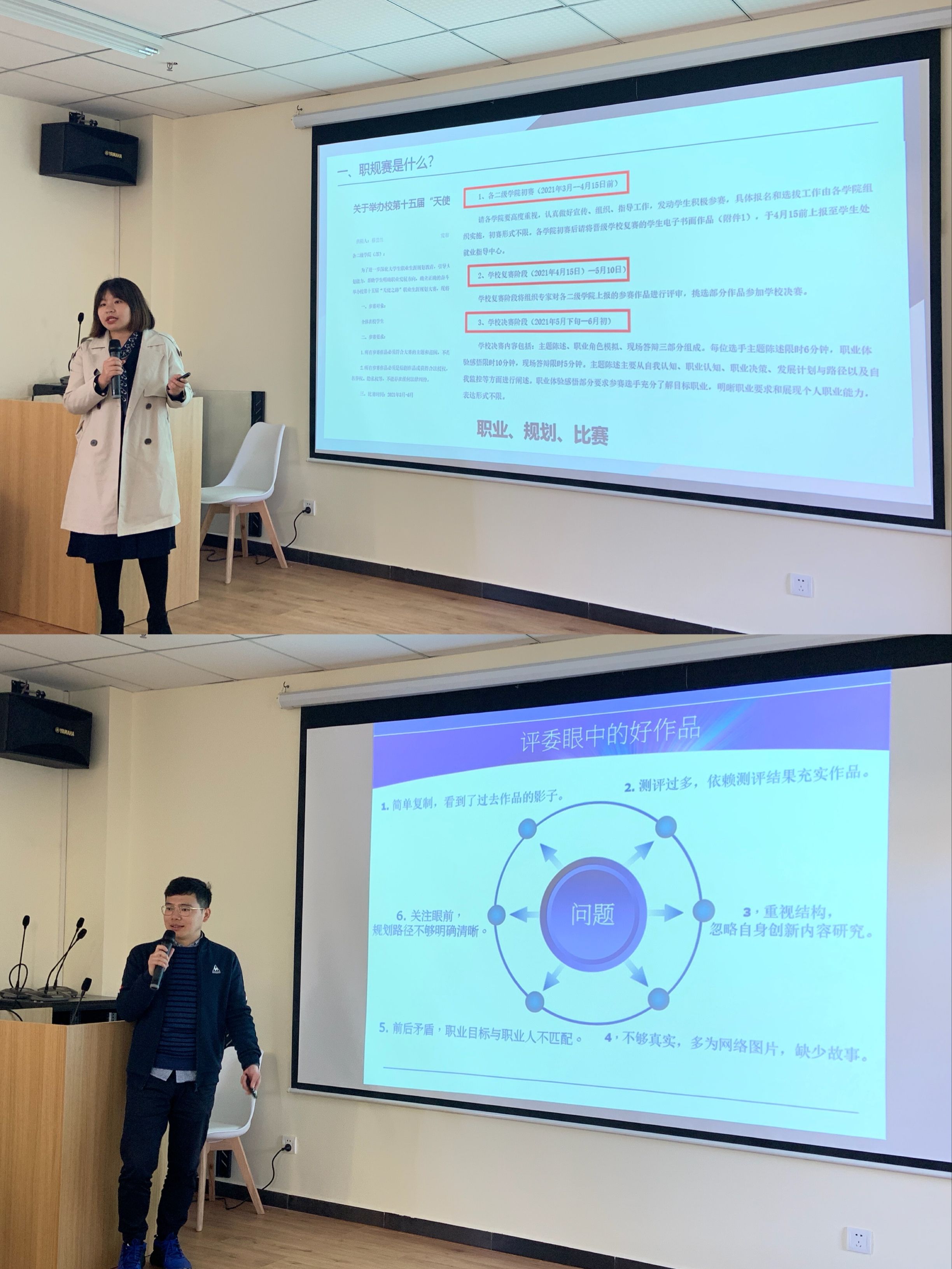 为了做好校第十五届“天使之路”职业生涯规划比赛作品选拔工作,提升指导老师的指导水平,3月25日、26日,学生处就业指导中心在滨江校区和临安校区分别举办了职规赛经验分享会。本次活动邀请了护理学院学工办副主任张纯老师和临床医学院辅导员邬帅老师作为主讲嘉宾,学工线部分老师参加了此次分享会。