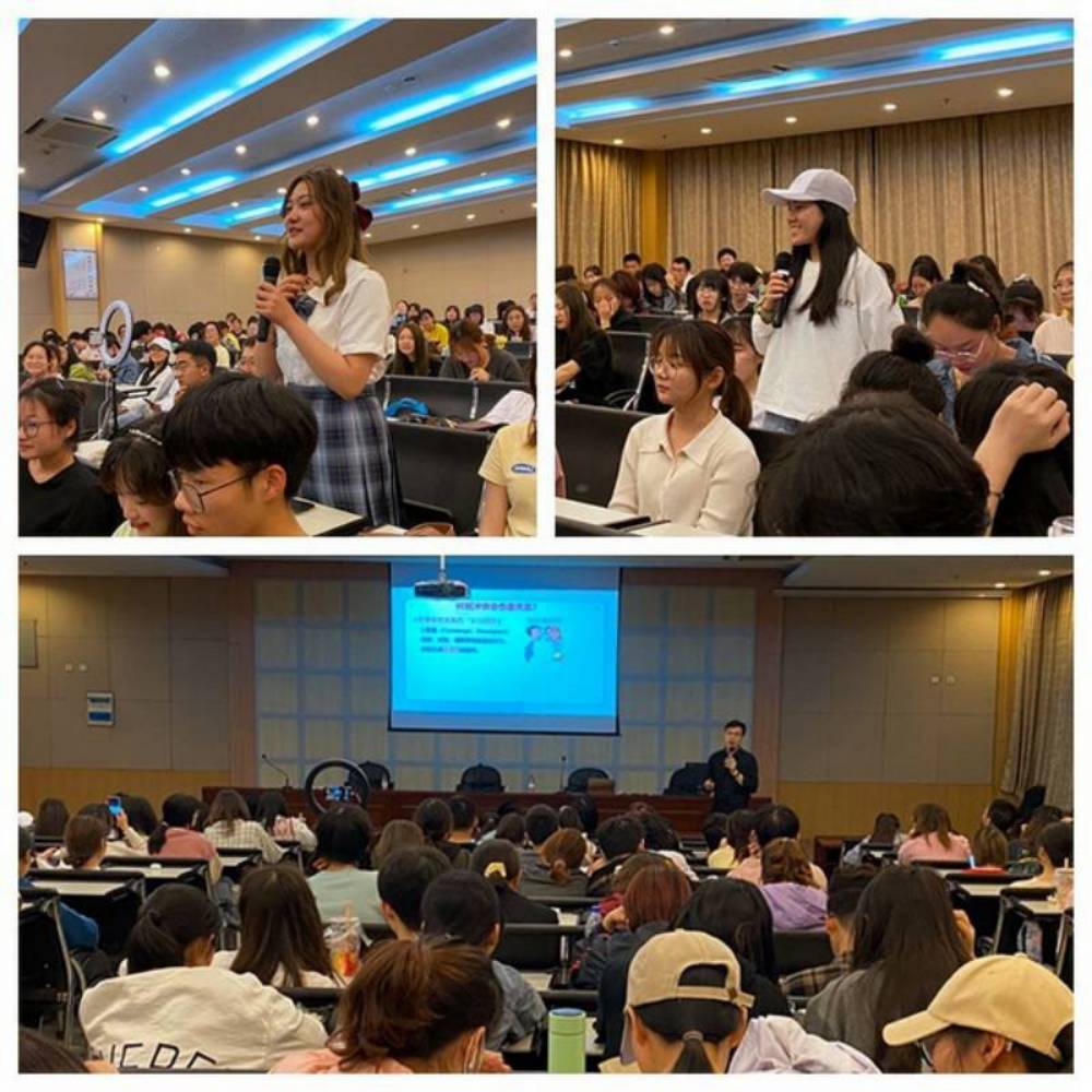 讲座尾声,黄老师还与同学们分享了异地恋的经营策略,让身处异地恋苦恼的同学们,继续鼓起爱下去的满满动力。互动环节中,黄老师风趣地回答了同学们提出的各类爱情困惑,并给予专业且真诚的建议,现场气氛异常热烈。