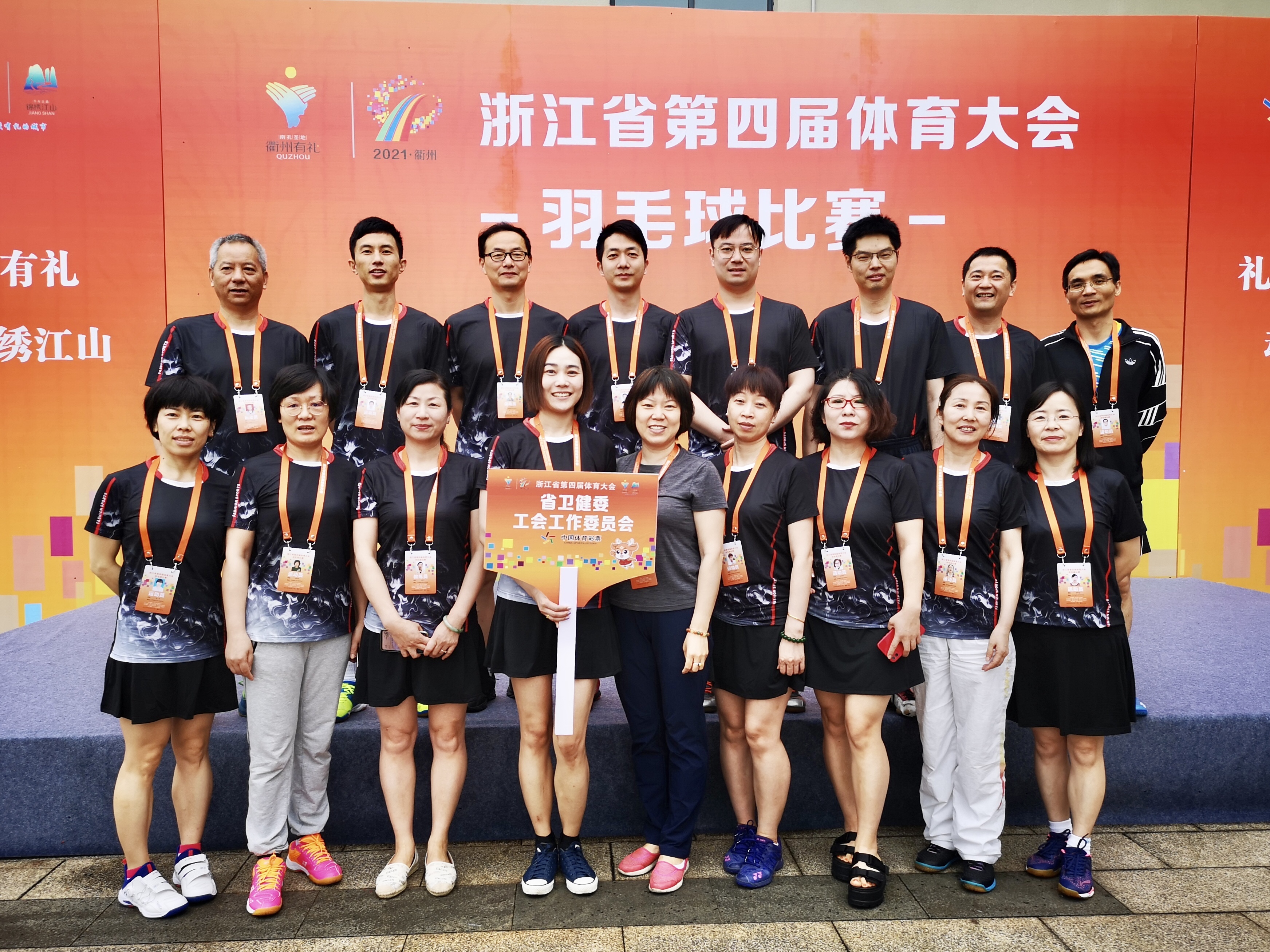 5月28—31日,浙江省第四届体育大会羽毛球比赛(行业协会组)在衢州江山市举行,受省卫健委工会委托,由杭州医学院组织,联合省卫健委直属单位杭州医学院附属人民医院、浙江医院、浙江省疾病控制中心、浙江省立同德医院共19名队员代表省卫健委参加比赛。