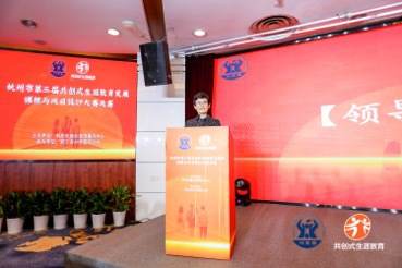 浙江省社会保险和就业服务中心就业管理处二级调研员董叶英致辞。她说,近年来杭州市大学生就业创业服务工作一直走在全省前列,创新推出的共创式生涯教育项目更是不断迭代升级,连续两届“专家主导、专业团辅、专心创新”的共创式生涯教育大赛,“以赛代训、导师训练营、共创式生涯训练营”等多重模式、参赛人员多元、思想与理论的融合等等都让“专”、“热”、“融”这三个特点愈发凸显。