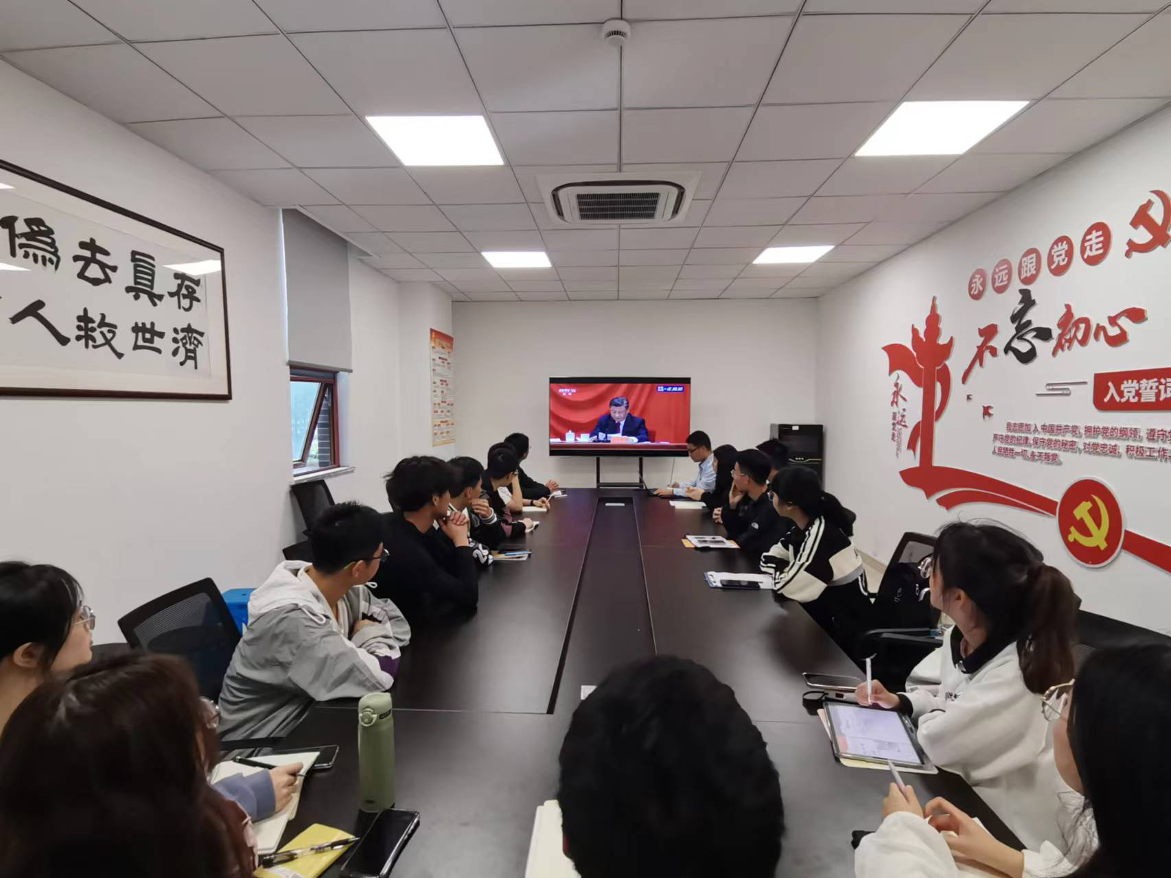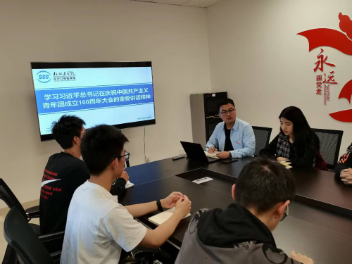 5月10日上午,庆祝中国共产主义青年团成立100周年大会在北京人民大会堂隆重举行。中共中央总书记、国家主席、中央军委主席习近平出席大会并发表重要讲话。下午5点,存济口腔医学院团委组织团员青年代表在7-201认真收听回看了大会实况,习近平总书记在庆祝大会上的重要讲话引起团员青年们热烈反响。