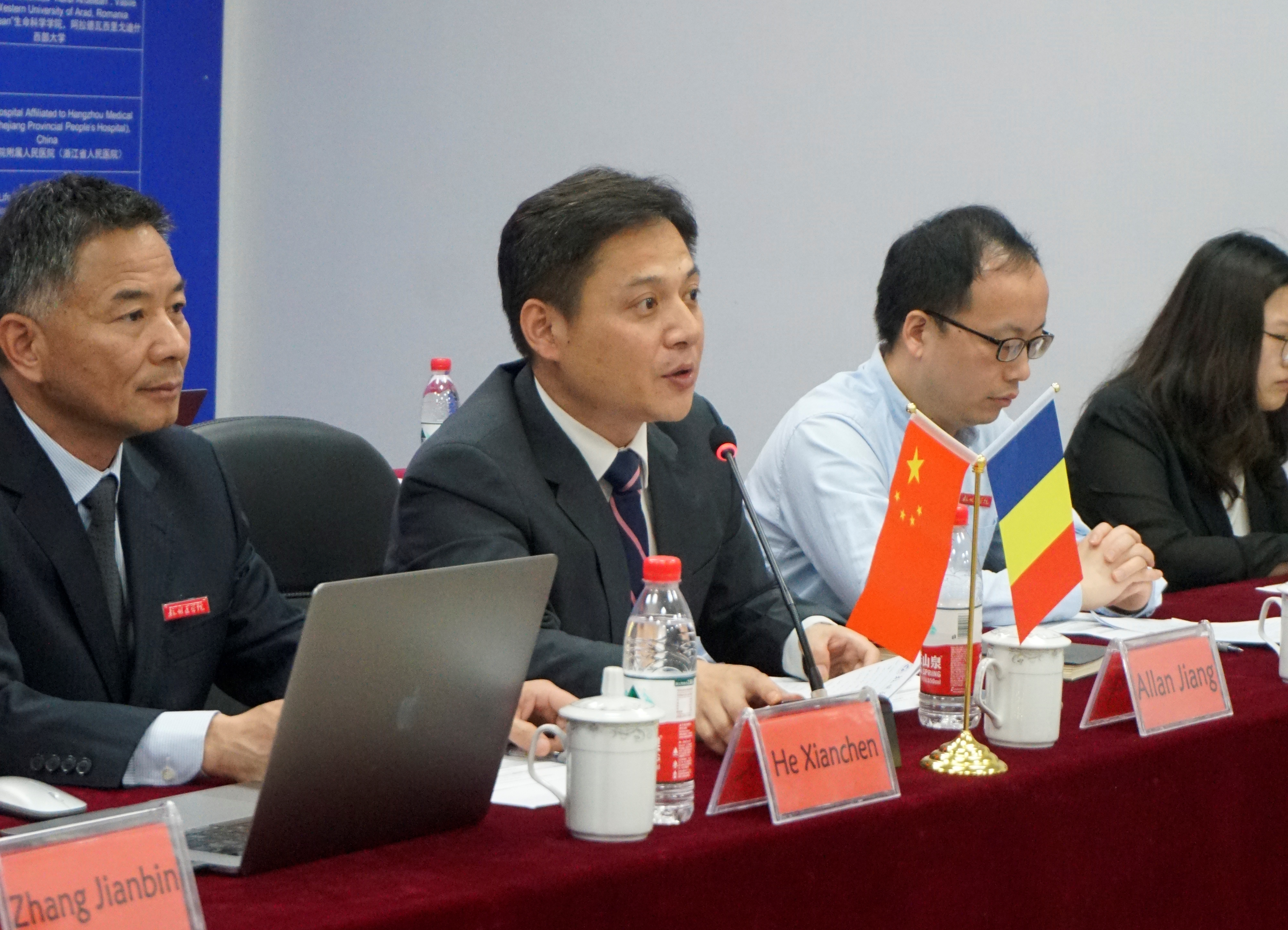 随后,我校党委副书记何贤晨教授向罗马尼亚的学者们介绍了杭州医学院。从校史、学生、师资、科研、国际合作等方面全方位介绍了我校的整体状况,充分展示了我校悠久的发展历史、雄厚的科研力量和宽广的国际视野。