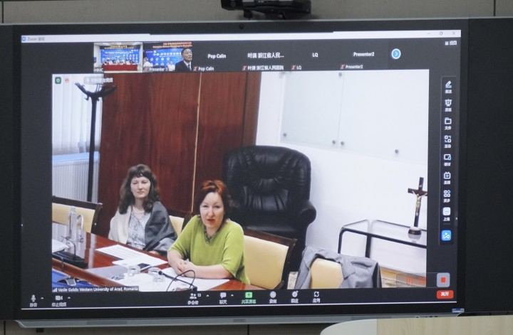 5月26日下午三点,中国-罗马尼亚生物医学研究研讨会于我校顺利召开。此次研讨会采用线上线下结合形式,让两国科研工作者跨越时空,进行充分沟通交流。阿拉德瓦西里戈迪什西部大学Coralia Cotoraci教授、Anca Hermenean教授、Calin Pop教授、Alciona Sasu博士、Cornel Baltă博士、Hildegard Herman博士、Hreniuc Catalin博士、Sami Gharbia博士、杭州医学院党委副书记何贤晨、交流合作处处长蒋剑锋、应士波教授、浙江省人民医院叶潇教授、张建宾教授、张圣教授、王晏鹏教授、王云帆教授等嘉宾出席了本次会议。我校师生也通过zoom视频会议和前往会场的方式参与聆听了会议。