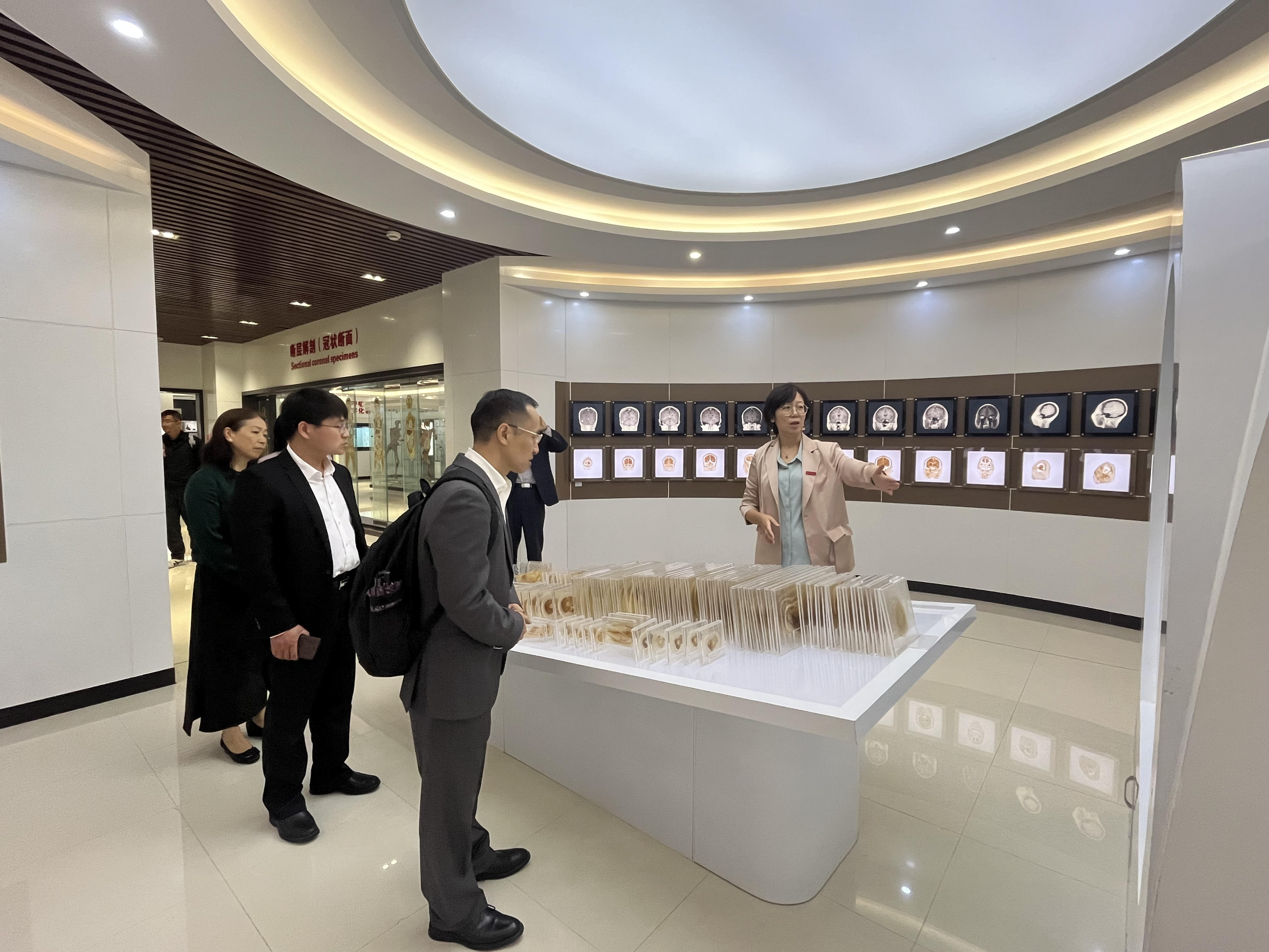 在此次特殊的接待中,学院领导首先向杜教授及家属表达了深深的感谢,孙爱华院长表示,正是由于他们无私的奉献和爱心,才使得我们的医学教育事业得以发展。同时,她对家属们失去亲人的痛心表示深切同情。在接下来的交流中,王珏书记详细的向家属解释了捐献的整个流程,以及杭州医学院遗体(器官)捐献接收站开展的相关活动,并参观了人体科学馆。