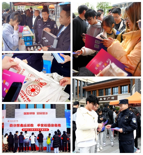 活动现场,防范电信网络诈骗、反邪教、禁毒等宣传手册分发了一千多份,师生频频在法律知识、反邪教知识、实验室安全知识、消防安全等展板和逼真的毒品模型前立足,众多学生参与体验、拍照打卡。广大师生在宣传喷绘墙上签下自己的名字,践行防诈禁毒反邪教承诺。