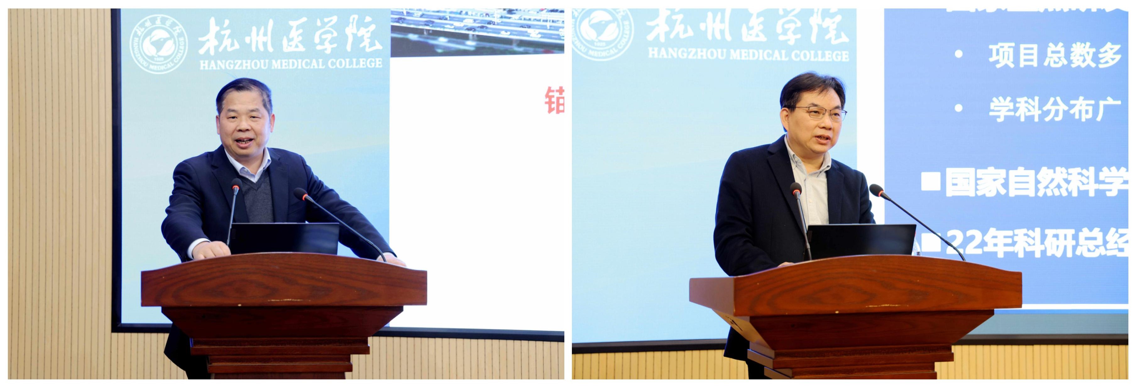 校长、党委副书记梁广在会议上强调国家自然科学基金项目是高校创新能力和跨越发展的重要体现指标,对于高校建设和学科建设具有重要意义。他对我校近年来在国家自然科学基金申报工作中取得的成绩表示肯定,2023年我校国家自然科学基金项目取得历史性突破,立项数和立项经费再次取得双突破,标志着杭州医学院强化有组织科研,构建“大科研”格局迈向新阶段。同时指出基金申报过程中突出的问题和存在的不足。因此,要做好2024年度申报工作,需要大家统一思想,凝心聚力,高度重视国自然申报与立项工作,他重点对以下四方面提出要求:一是要加强系统组织布局,各学院要高度重视、提高站位,提前做好规划设计引导工作;二是要形成学校、学院、科研处、申请人四级联动和有效互动的工作机制,为有序高效地推动基金申报工作提供更有力的支撑;三是要重视创新性、聚焦研究、精益求精,注重申报书的质量;四是在申报过程中,各位申请人一定要恪守科研诚信。力争在2024年度国家自然科学基金项目申报中取得新的更大突破,助力学校建设,提升学校整体科研水平。