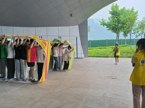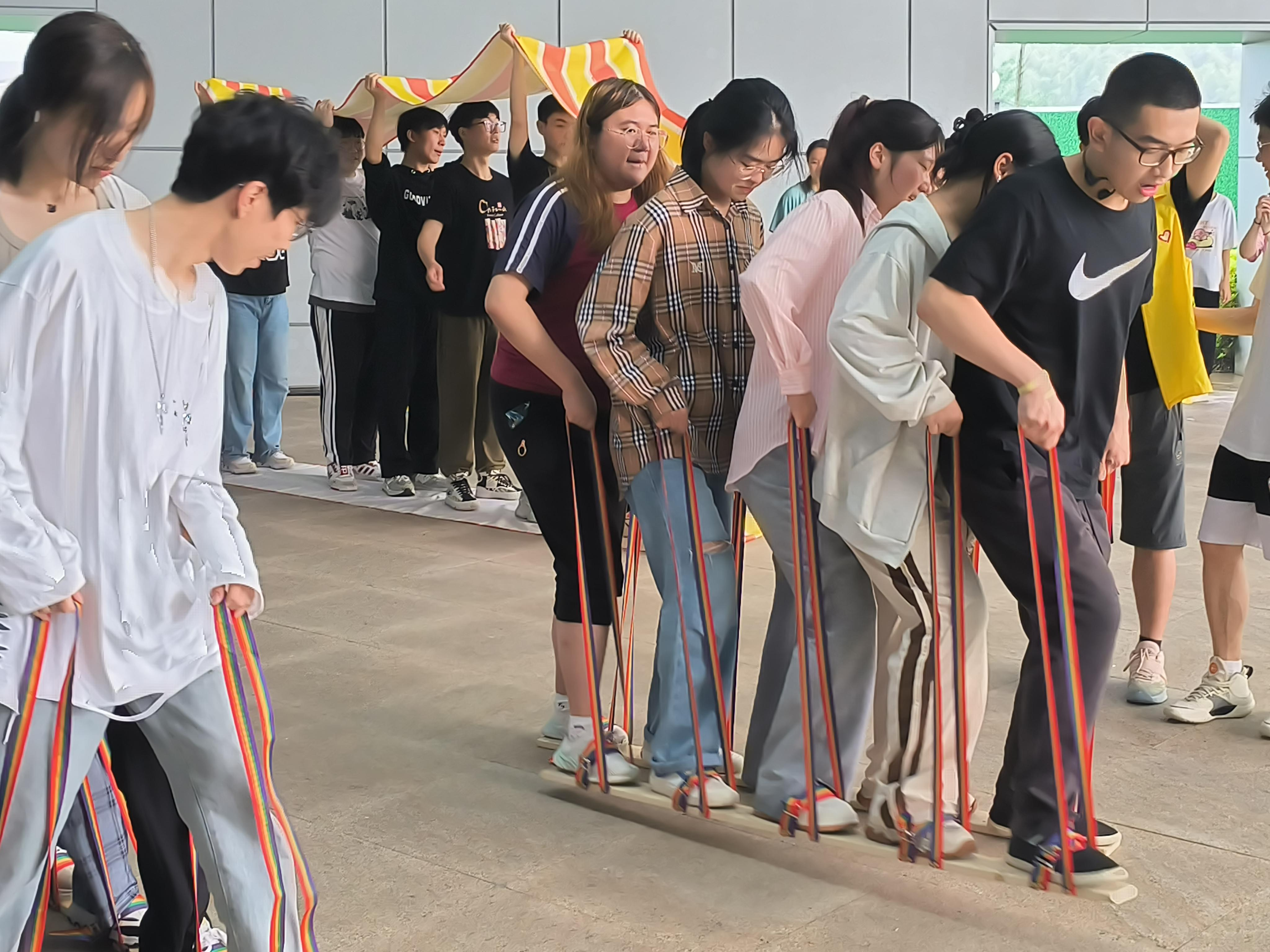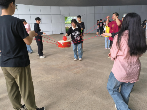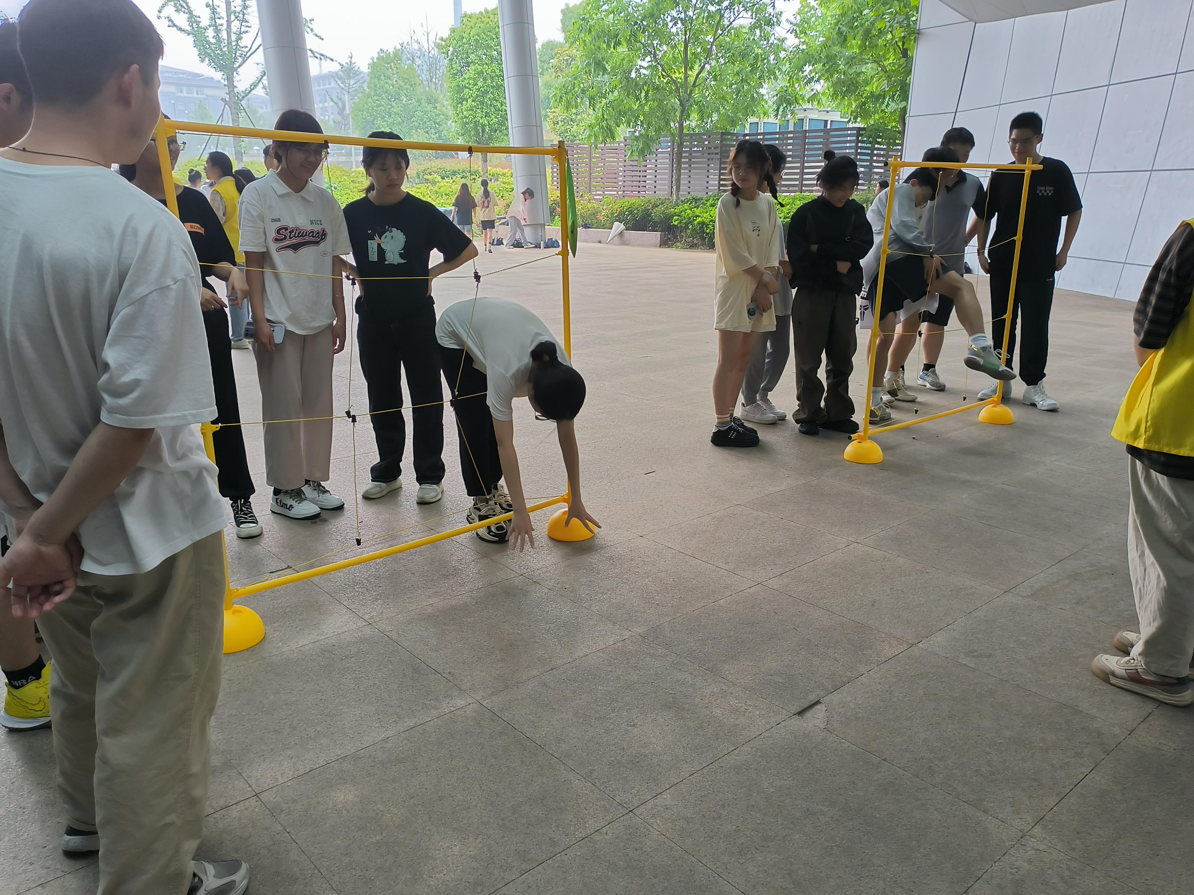 本次活动共含有四项团体小游戏,分别是穿越电网、有轨电车、鼓舞飞扬、无敌风火轮,每项活动以积分的形式计算总分,按总分高低设一等奖1名、二等奖2名、三等奖3名。每项小游戏第一名记6分,第二名记5分,第三名记4分,以此类推。比赛中,参赛团队积极讨论、集思广益,寻找快速而又简单完成任务的最优方法。这些团体项目考验的不仅仅是个人的才智和能力,更是整个团体间的默契与配合、沟通与协调。“个人能干事,是一种能力。而与善共事,更是一种本领。”在穿越电网游戏中,游戏要求参赛者禁止身体的任何部位触碰到电网,并且其他人不得在另一侧帮忙,同学们充分展示个人的行动力,灵巧敏捷地穿越了下层的三格电网,同时又帮助剩下的同学在中上层穿越,以用时最短为目标完成比赛。在其他三项活动中亦是如此,同学们在各自的团队中同心戮力、奋楫笃行,虽然中途遇到了种种困难,但大家都相互配合、共同解决问题,赢得了其他同学的赞扬与鼓励。同学们积极参与活动,讨论声、助威声与欢笑声围绕在整个活动场上。