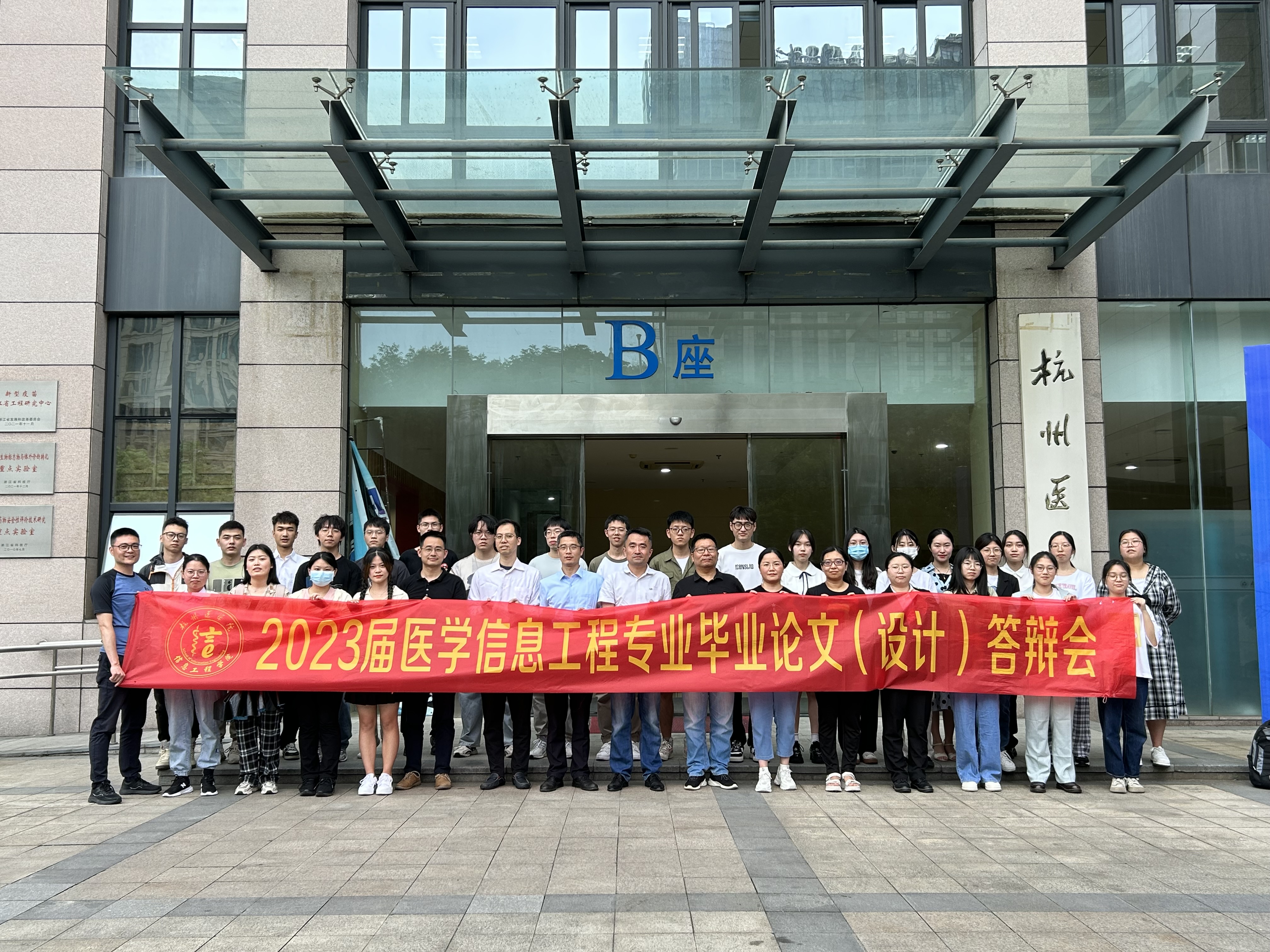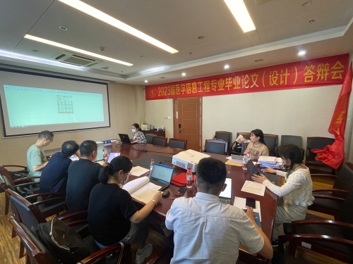 为了充分检阅第一届毕业生们对自身专业知识的掌握情况以及将知识转化为实践能力的熟悉程度,信息工程学院于5月28日在黄龙校区19楼会议室举行2023届医学信息工程专业毕业论文(设计)答辩会,27名名全体应届毕业生及评审老师参与,本次答辩会邀请了杭州电子科技大学信息工程学院计算机学院党总支书记兼执行院长张海平、原浙江中医药大学医学技术与信息工程学院院长应航、附属临安人民医院信息中心主任吴树仁3位校外专家与学院7位专任教师组成2组专家组。