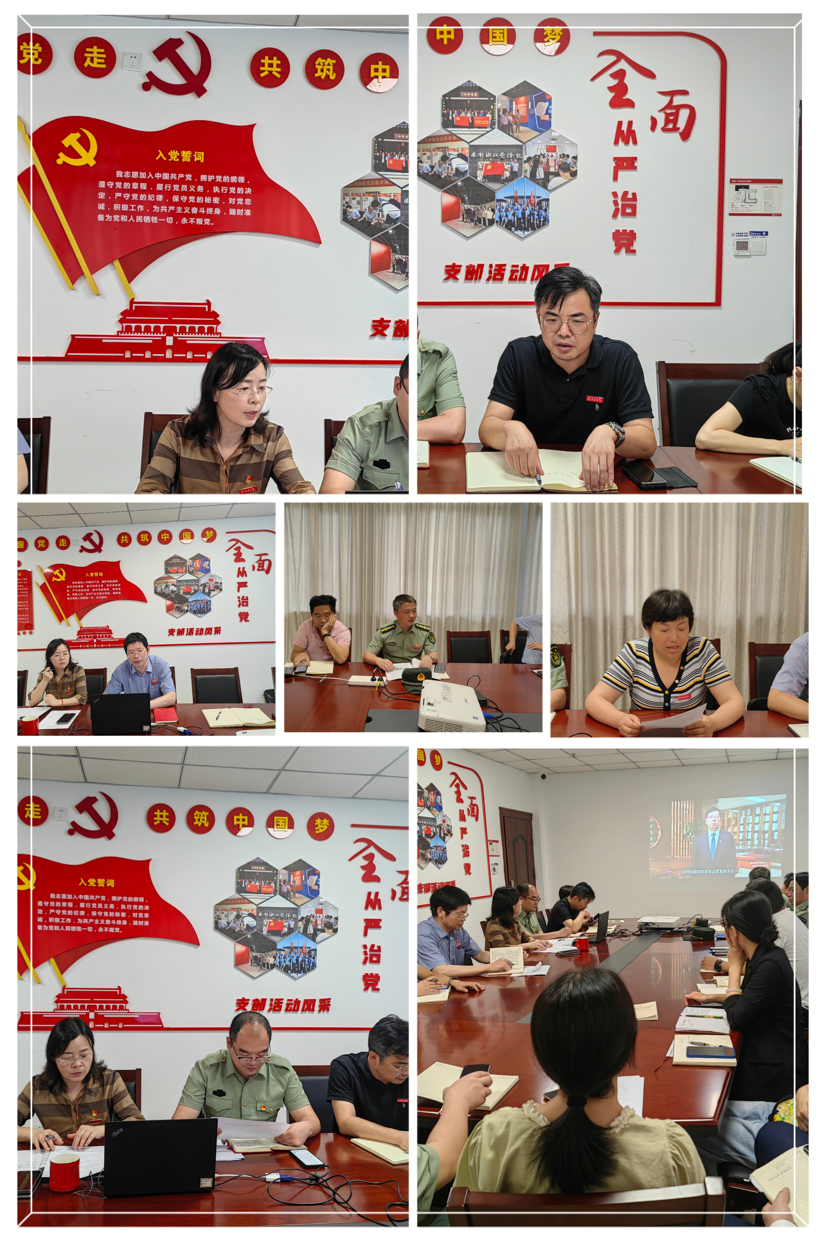 会议开始,全体党员重温入党誓词,面向党旗宣誓,铿锵有力的宣誓声响彻支部党员之家,唤起党员们入党时的那份初心、激情,激励大家在干事创业中敢担当,对党忠诚,冲锋在前。