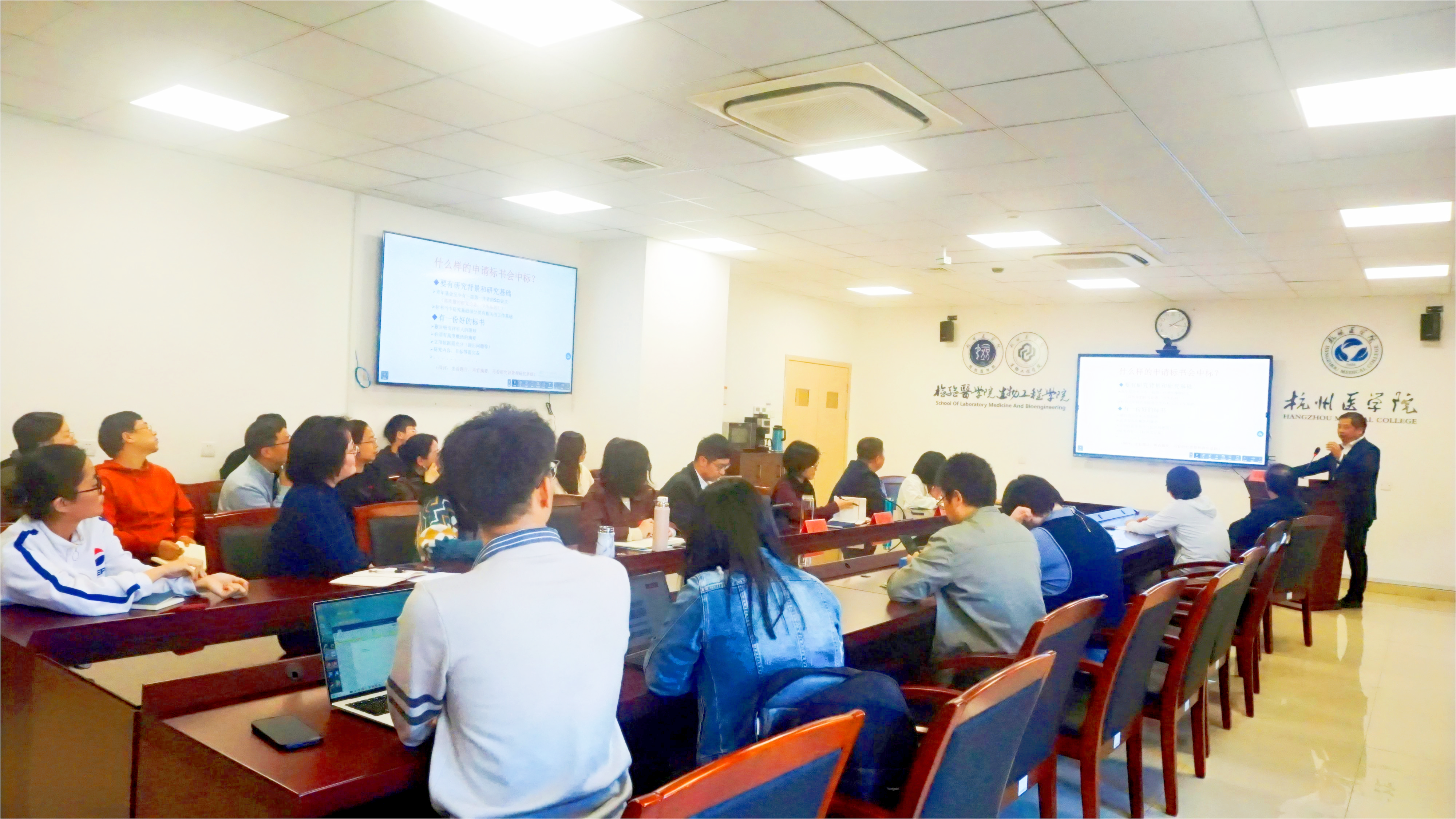 11月12日下午,检验医学院、生物工程学院“验真求实”大讲堂第46讲暨2025年国自然基金申报启动会在临安校区11号楼404会议室顺利召开。本次讲堂邀请到杭州医学院附属人民医院副院长俞云松教授,带来《如何申报国自然以及申报过程中注意事项》的精彩讲座。学院领导、全体教师和部分研究生参与了此次活动,会议由金大智副院长主持。