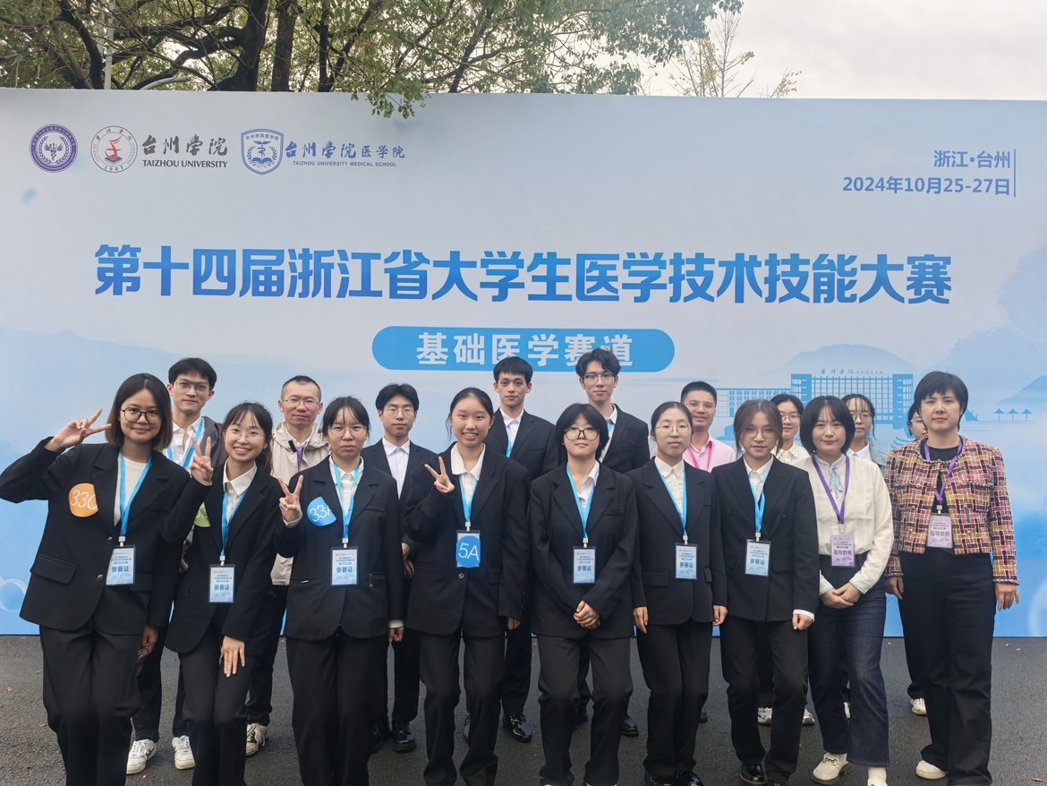 近期,第十四届浙江省大学生医学技术技能大赛(基础医学赛道)在台州学院举行。本次大赛全省12所高校33支队伍共146名选手同台竞技,参与决赛的比拼角逐。我校高度重视本次赛事,由基础医学与法医学院负责赛事相关的组织、协调和筹备工作。参赛选手们放弃课余时间奔波于系统解剖、医学机能等实验室,刻苦练习实验操作。在老师们悉心指导下,同学们戮力同心最终在决赛斩获1金1银1铜的优异成绩。
