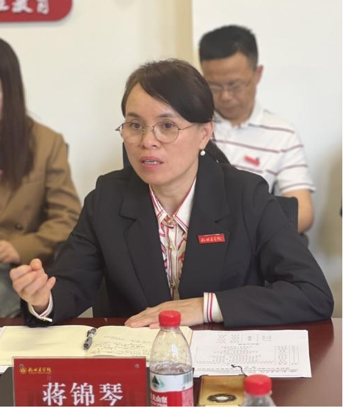 蒋锦琴在汇报中详细介绍了学院概况,围绕教育教学、学科建设及平台构建等方面的工作进展,提出了学院未来发展目标和工作思路。