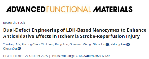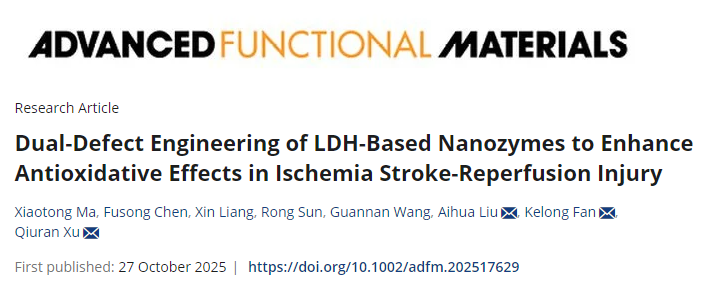 AFM | 杭州医学院许秋然团队研发LDH基纳米酶双缺陷工程助力缺血性脑卒中治疗