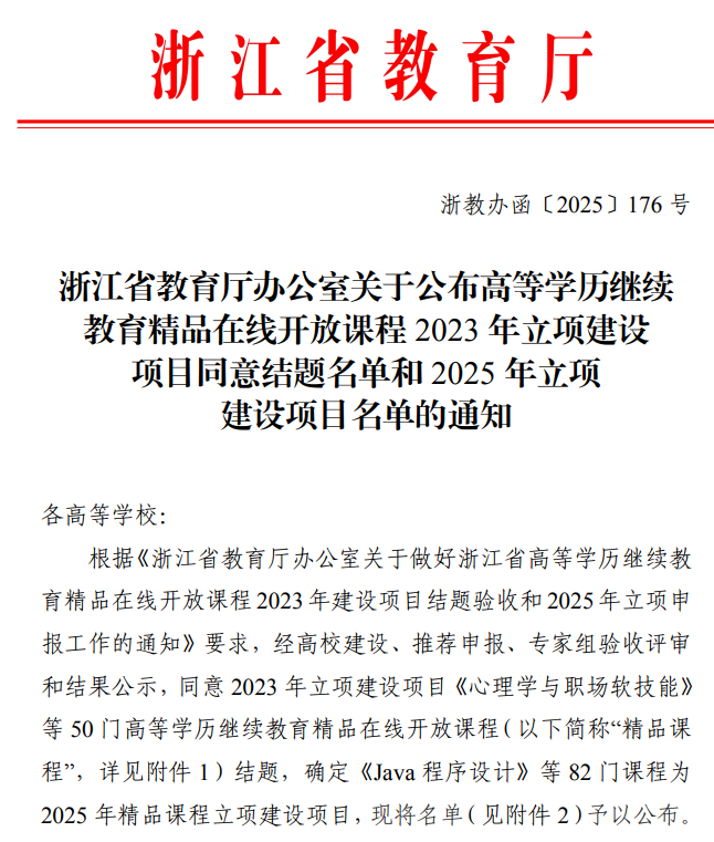 我校2025年浙江省高等学历继续教育精品在线开放课程立项、结题双丰收